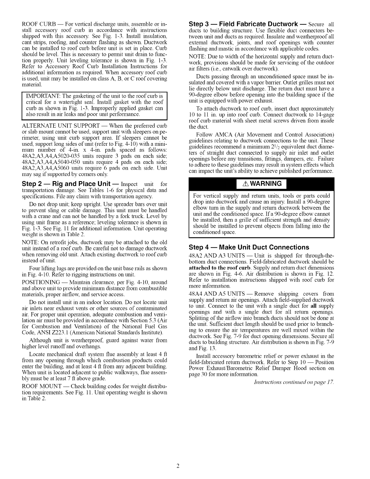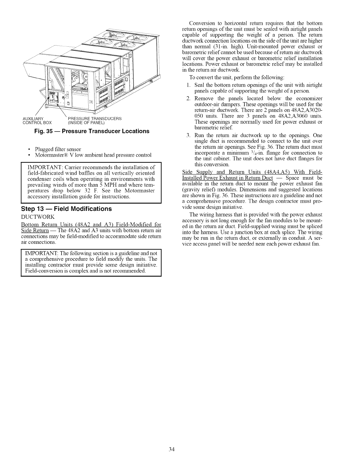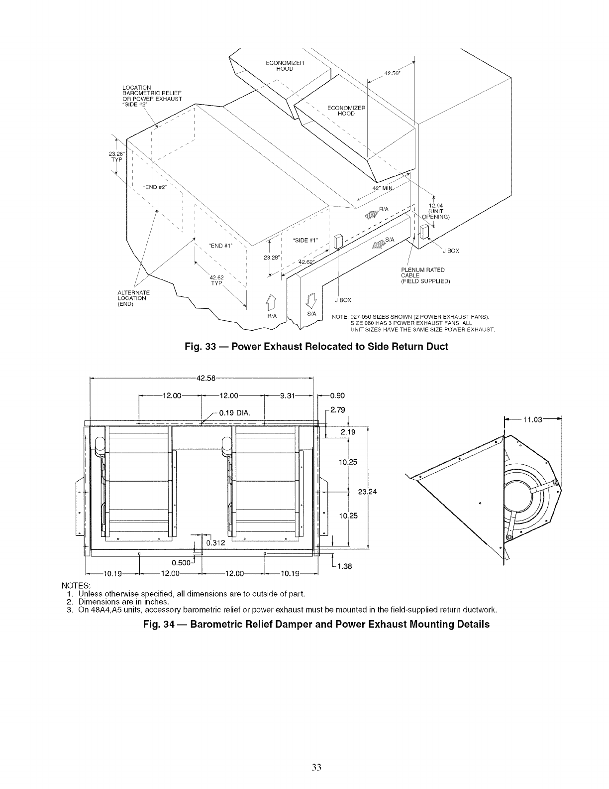 3, On 48A4,A5 units, accessory barometric relief or power exhaust must be mounted in the field-supplied return ductwork,