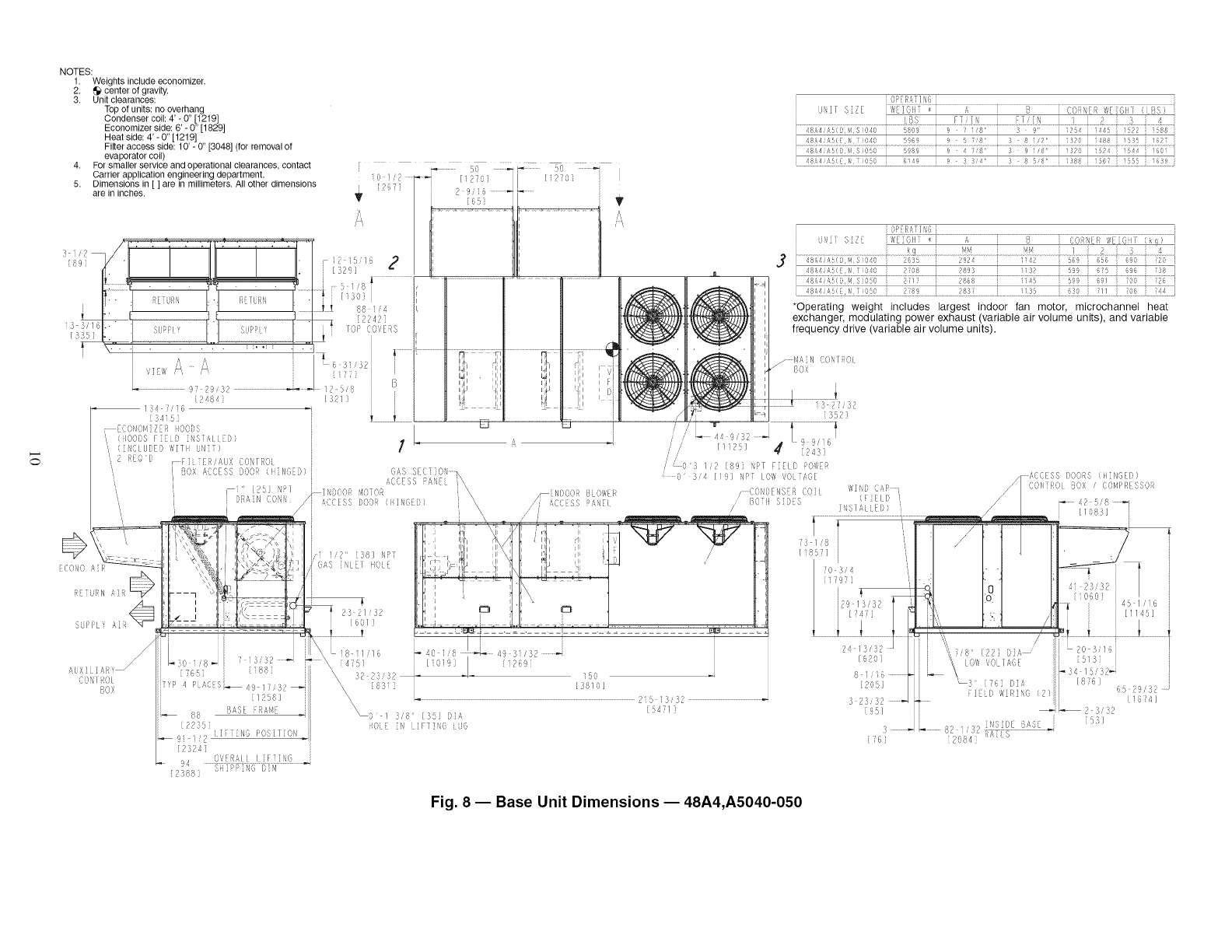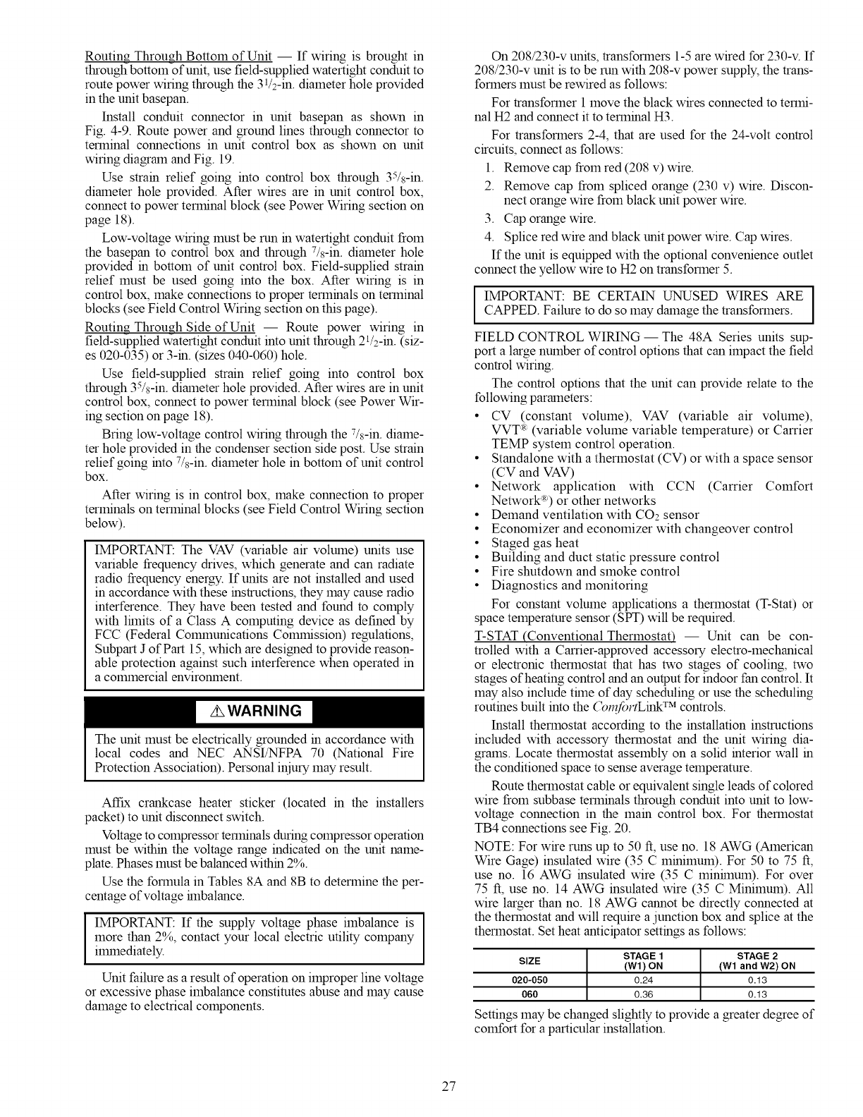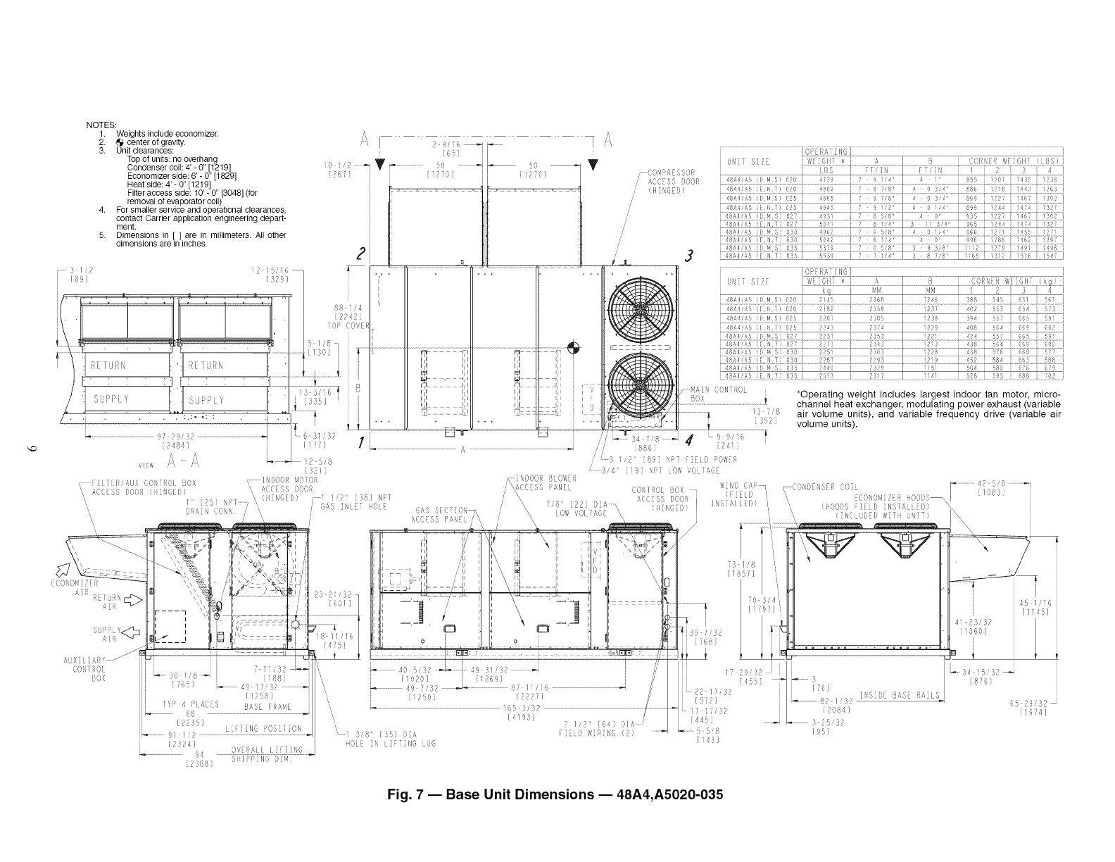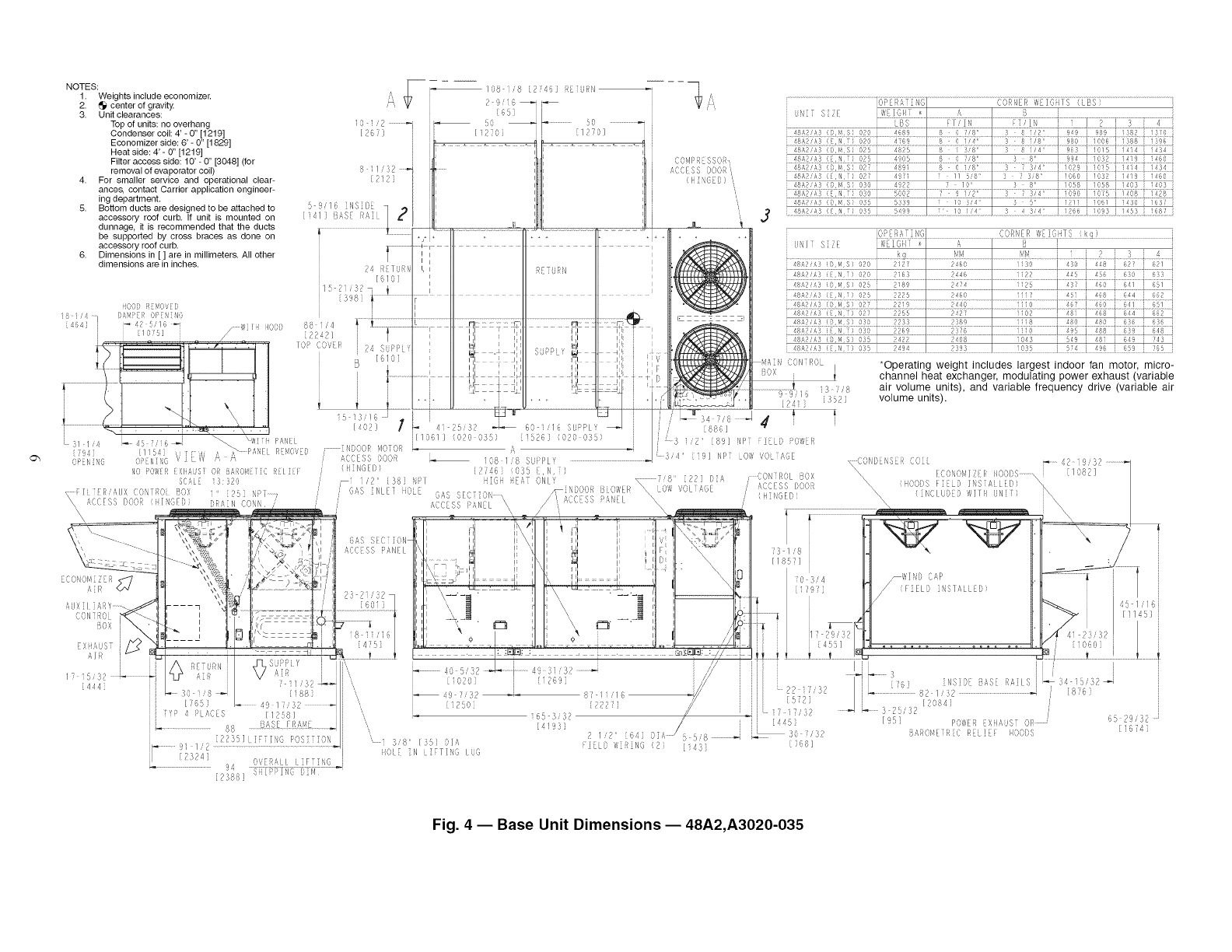 3, On 48A4,A5 units, accessory barometric relief or power exhaust must be mounted in the field-supplied return ductwork,