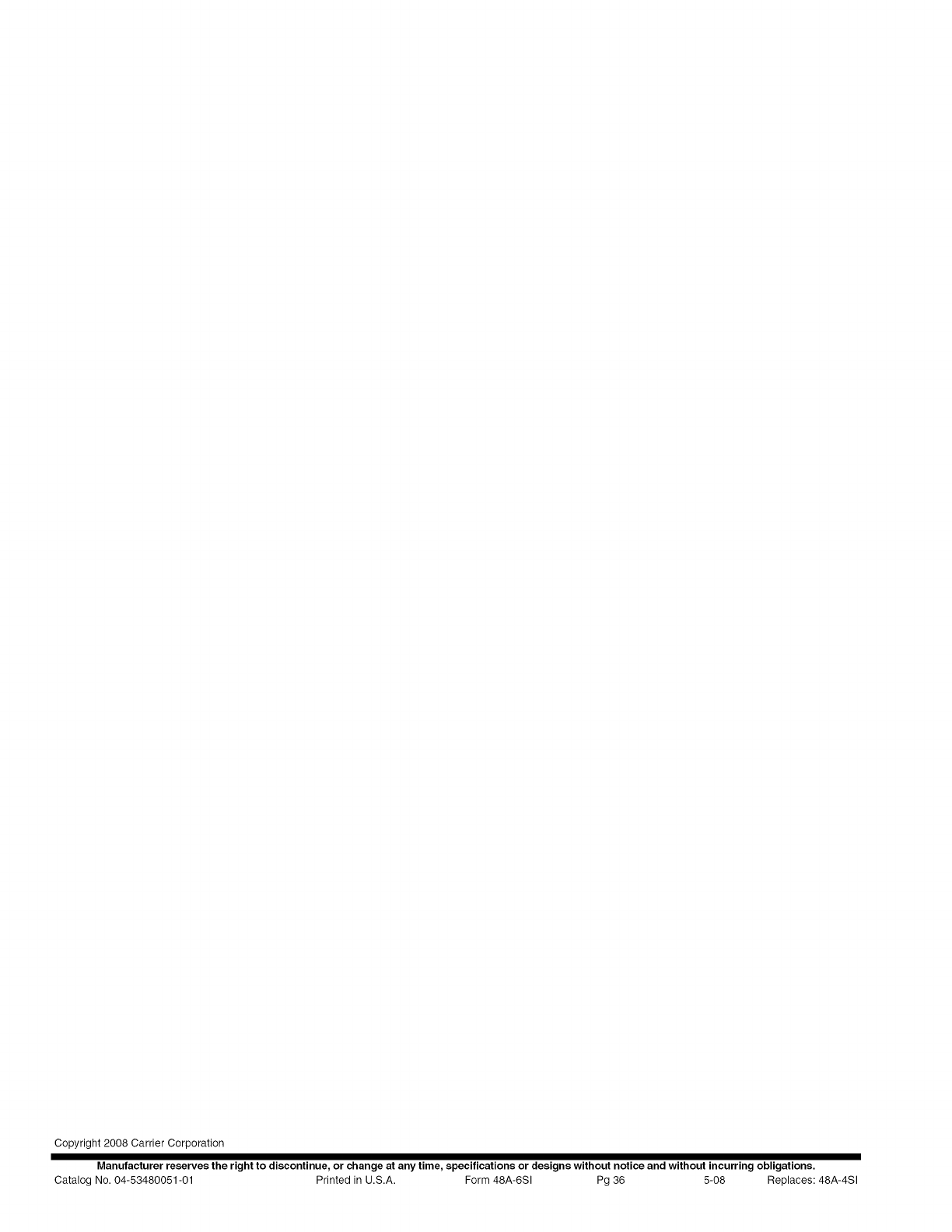 Catalog No. 04-53480051-01 Printed in U.S.A. Form 48A-6SI Pg 36 5-08 Replaces: 48A-4Sl