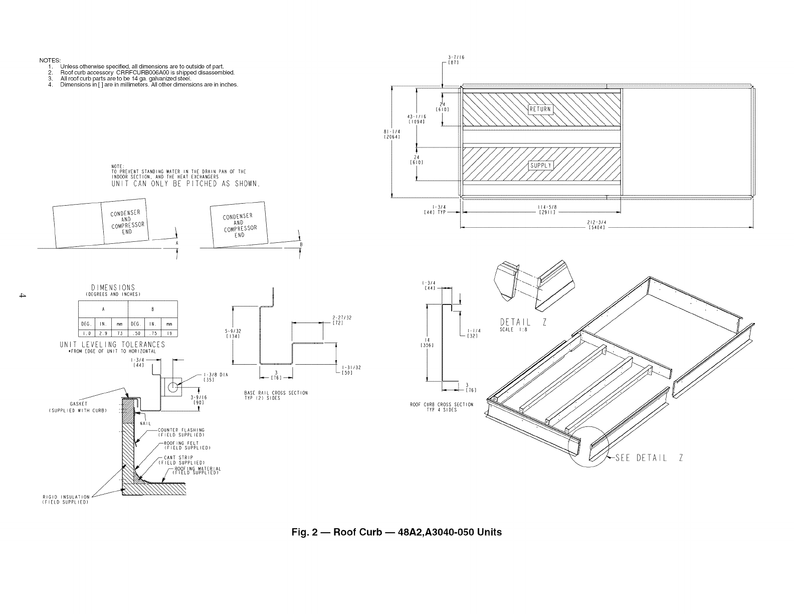 can be installed to roof curb before unit is set in place. Curb