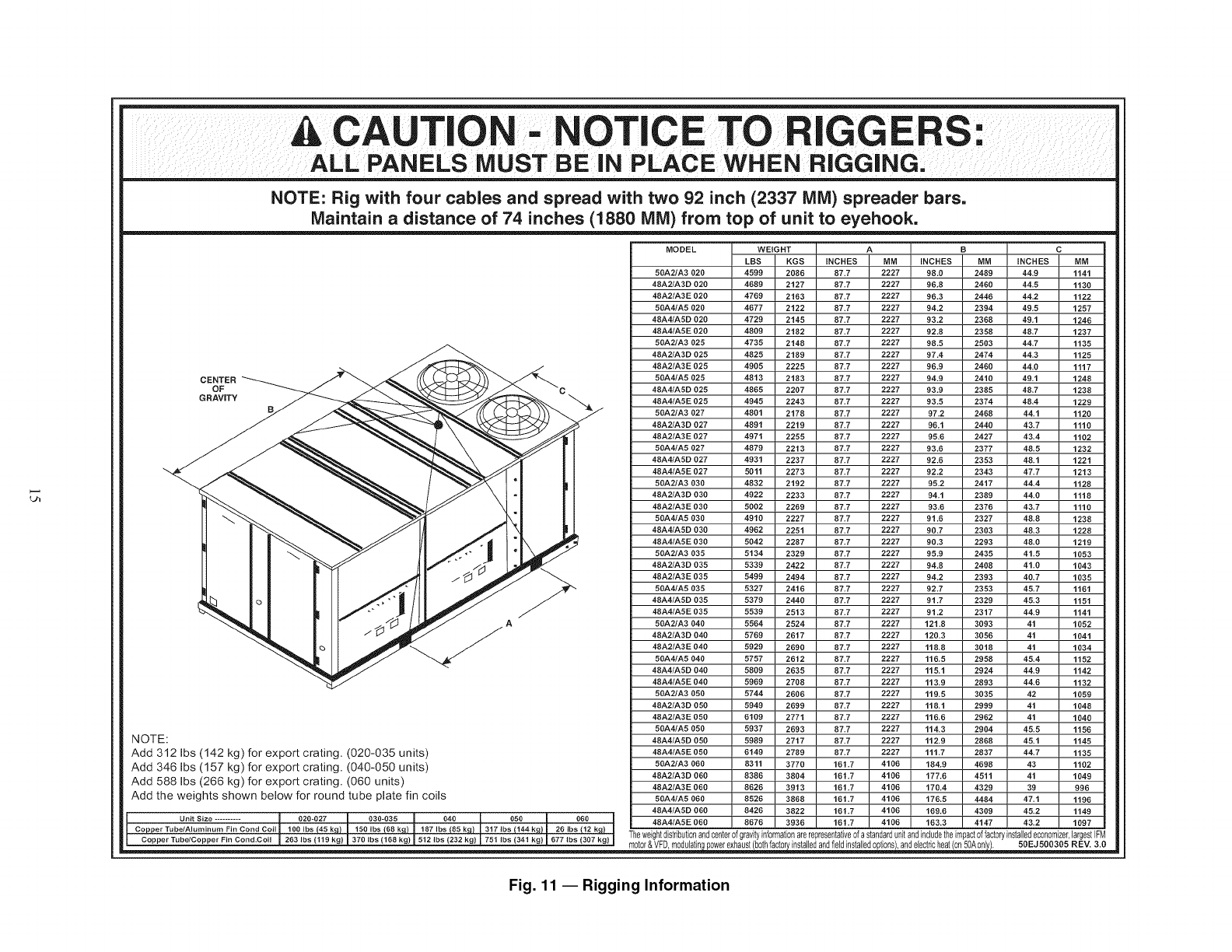 1. All panels must be in place when rigging or damage