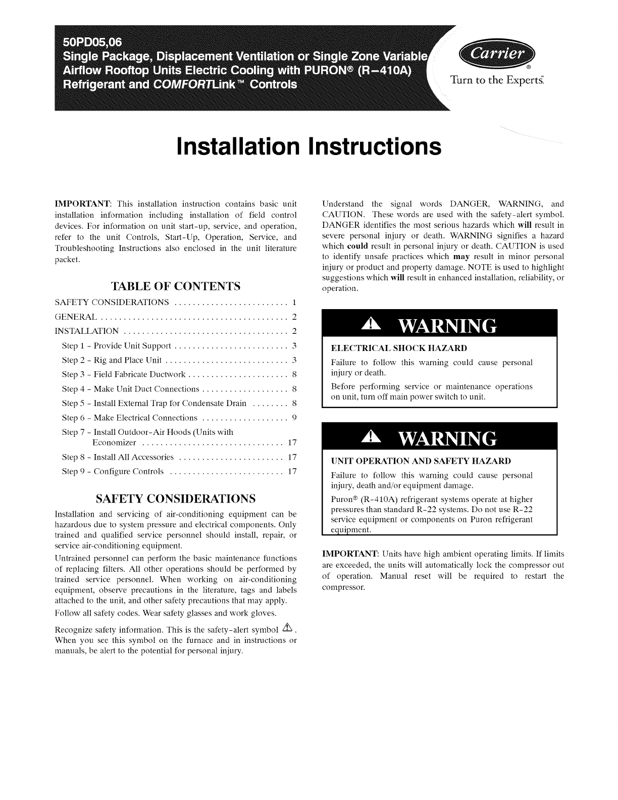 User Manual: CARRIER CARRIER Package Units(both units combined) Manual CARRIER Package Units(both units combined) Owner's Manual, CARRIER Package Units(both units combined) installation guides