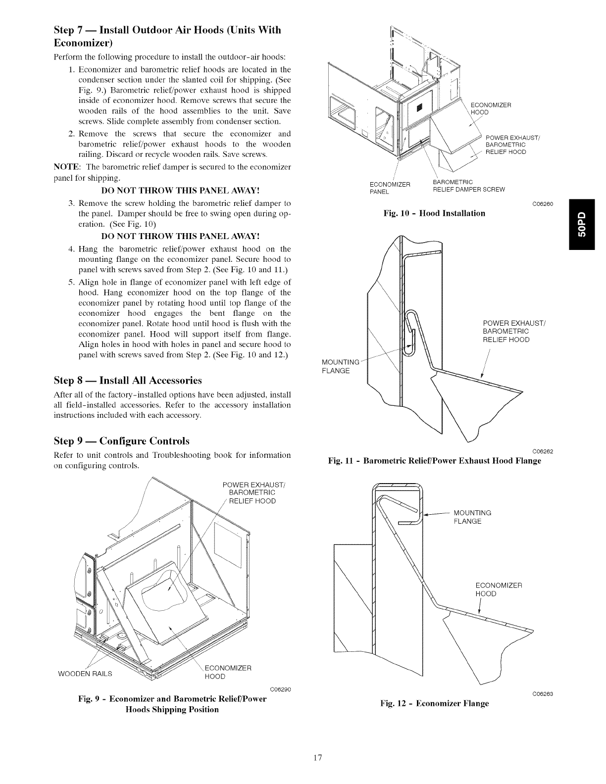 Fig. 9.) Barometric relief/power exhaust hood is shipped