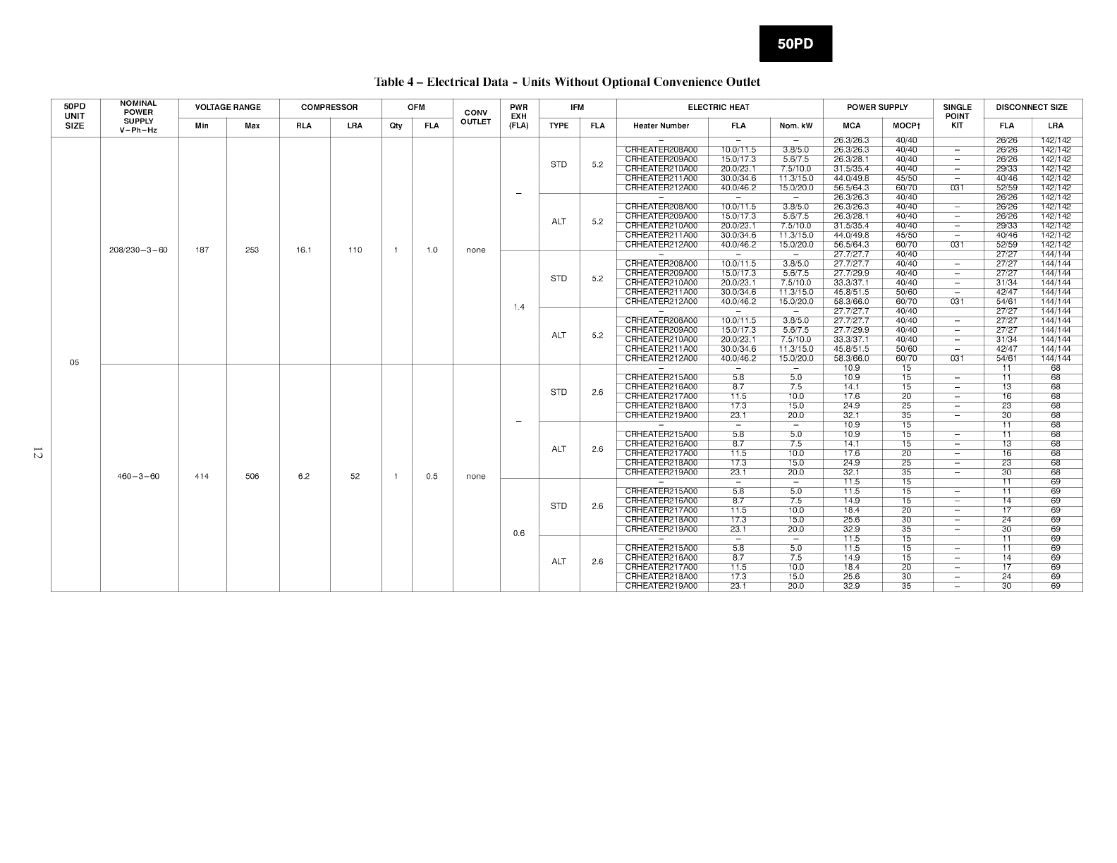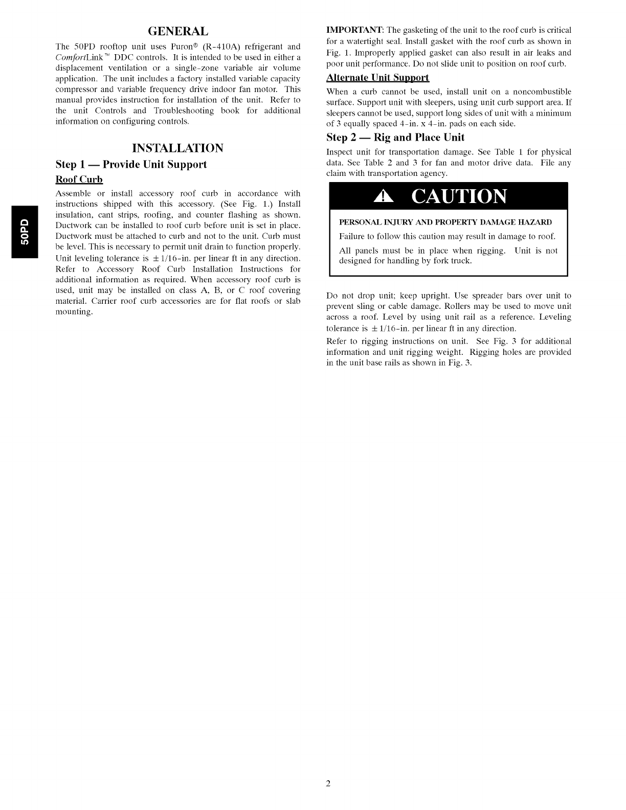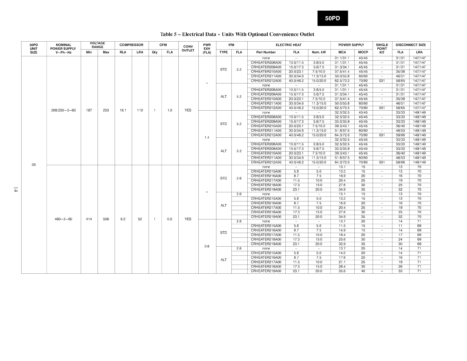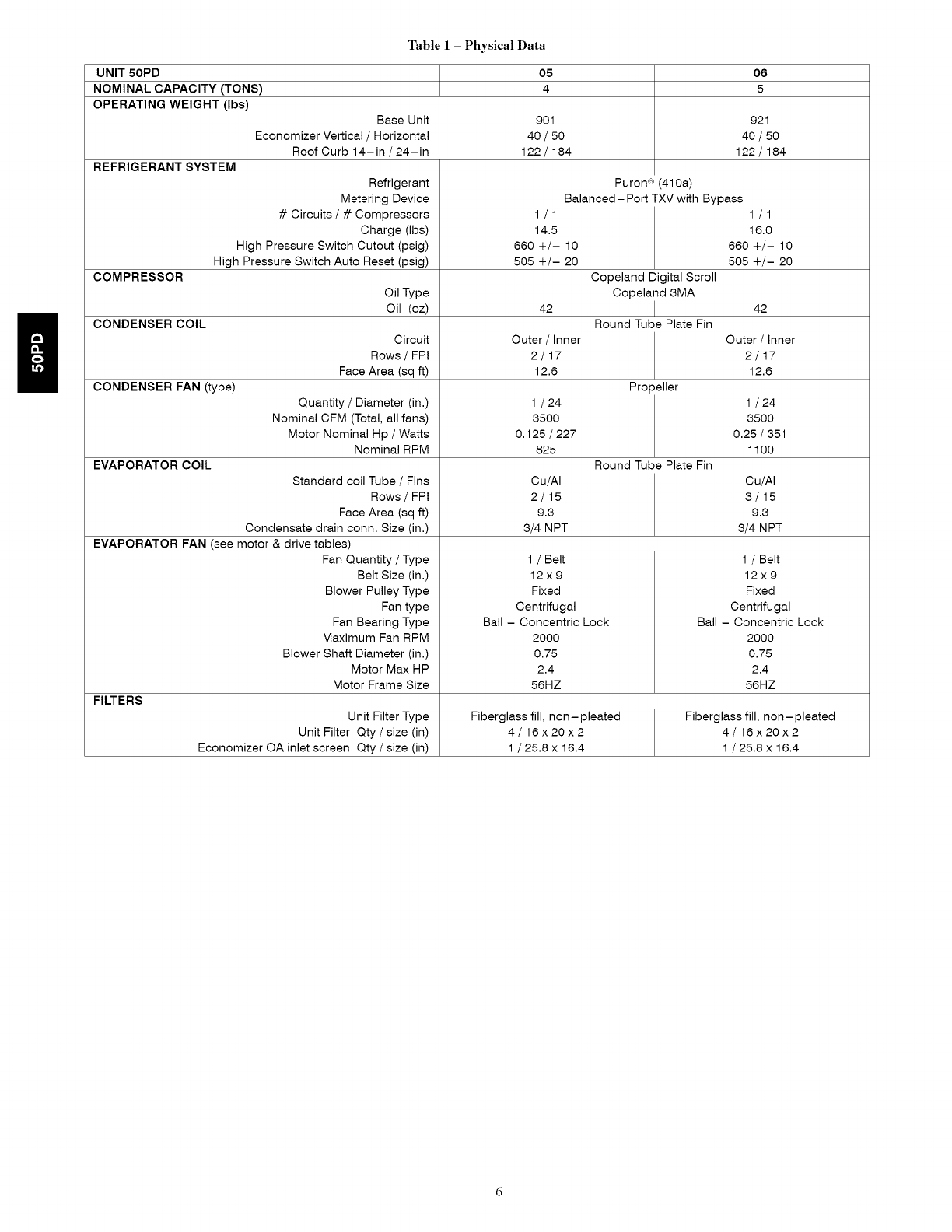 The 50PD rooftop unit uses Puron ® (R-410A) refrigerant and
