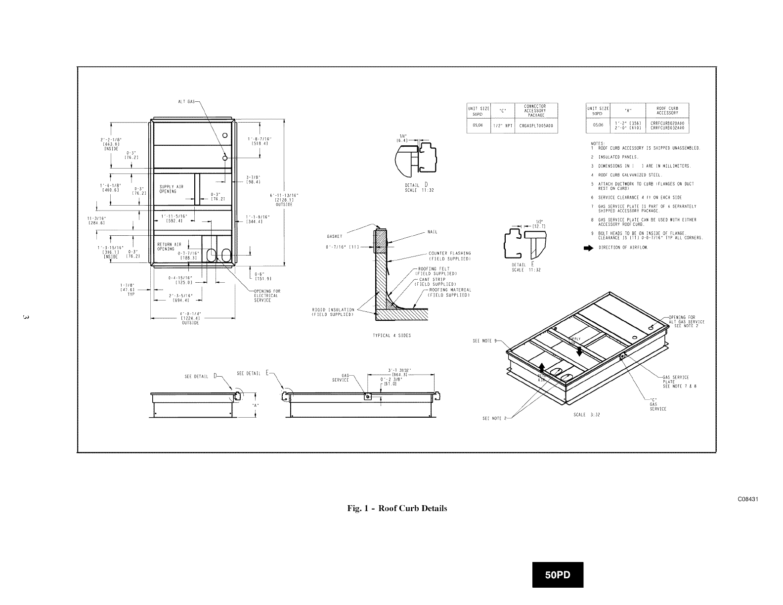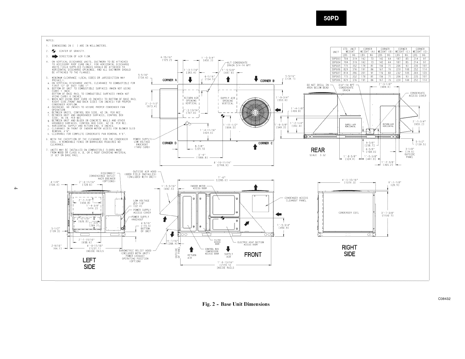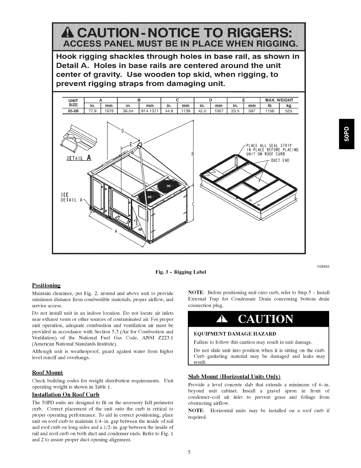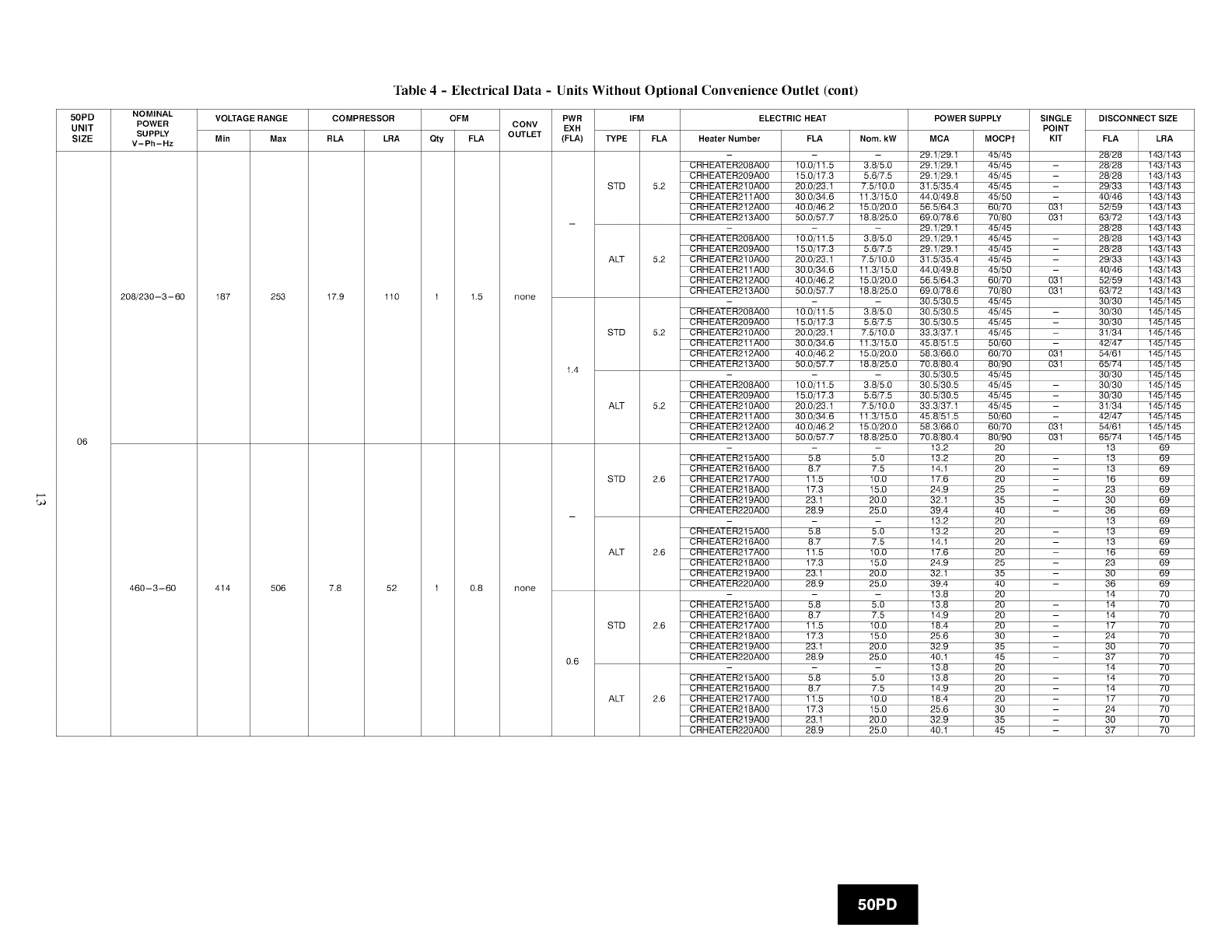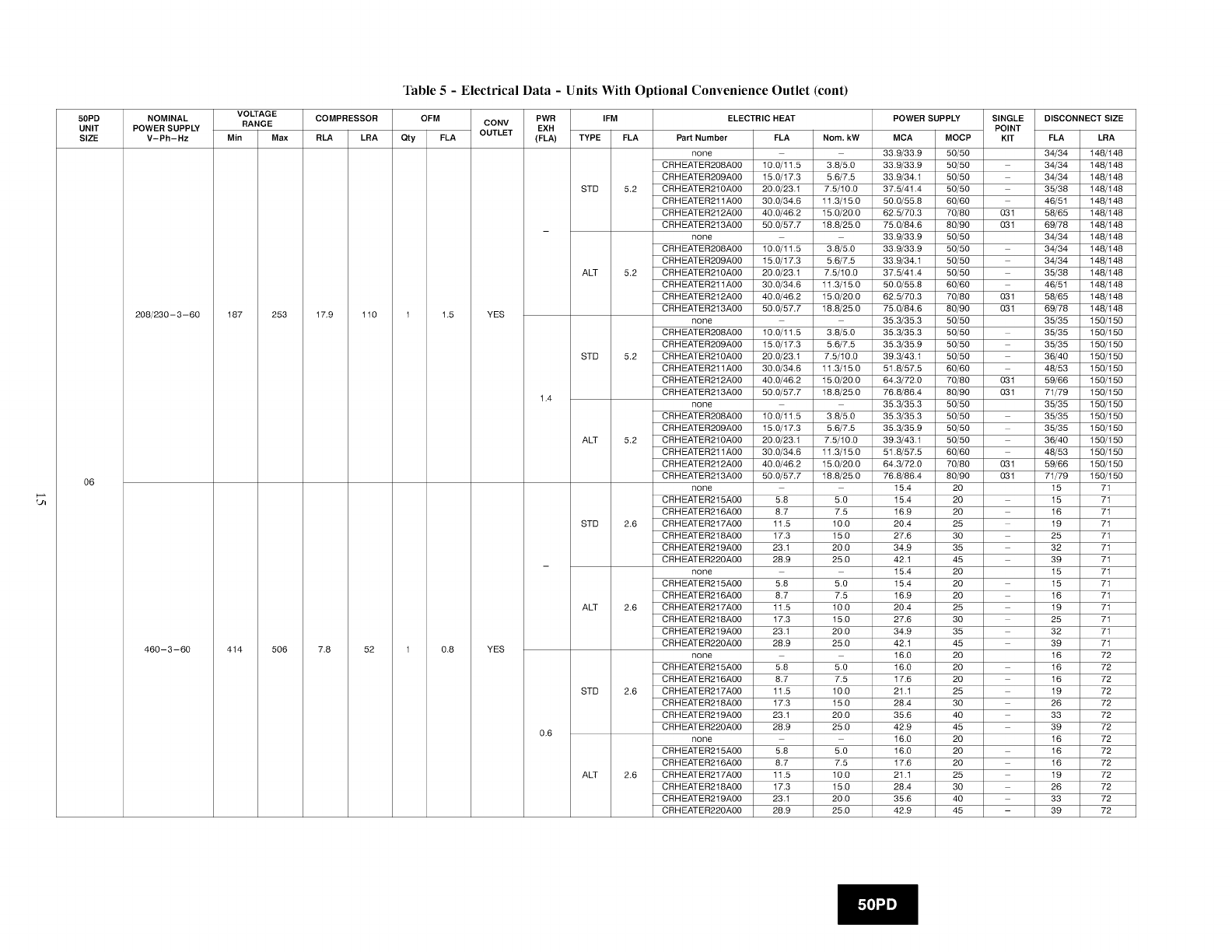 The 50PD rooftop unit uses Puron ® (R-410A) refrigerant and