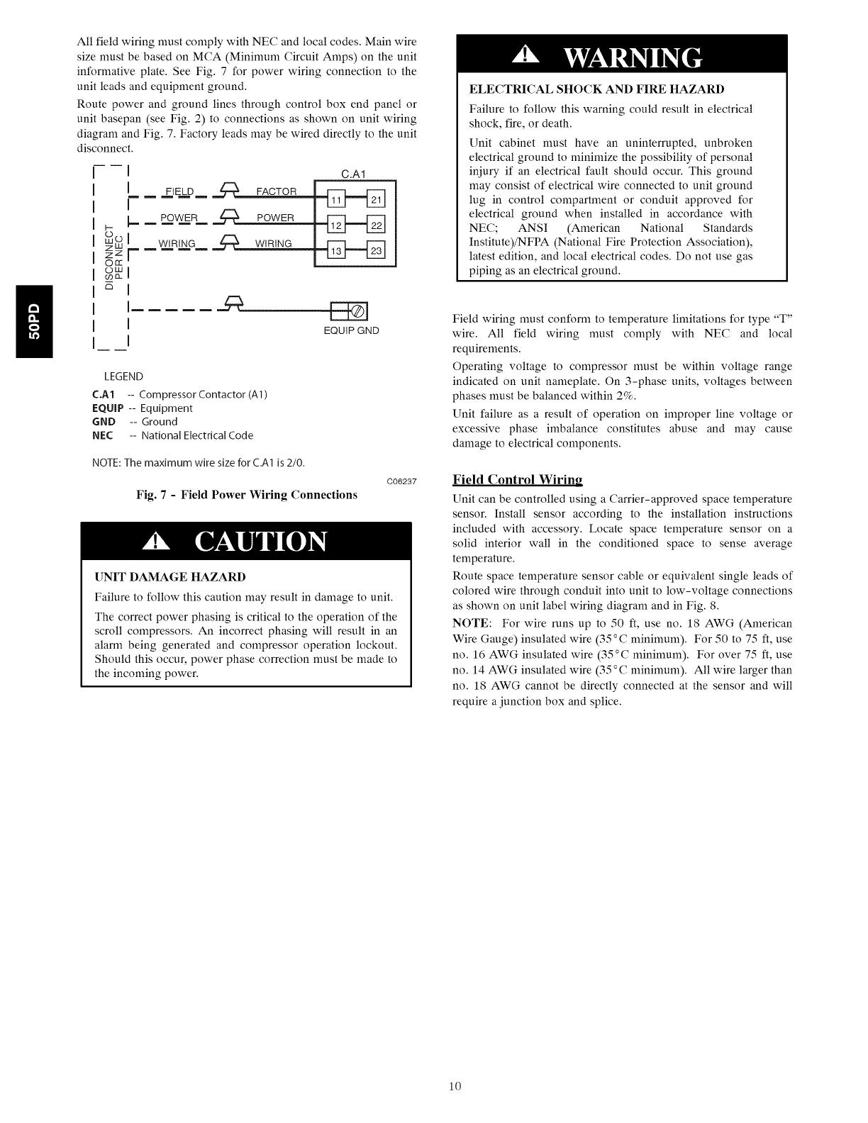 protective device for the unit shall be fuse or HACR breaker. Canadian units may be fuse or circuit breaker.