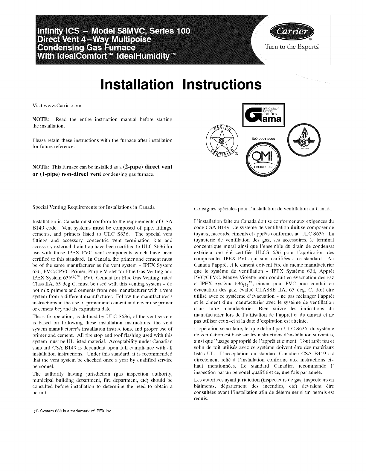 (1) System 636 is a trademark of IPEX Inc.