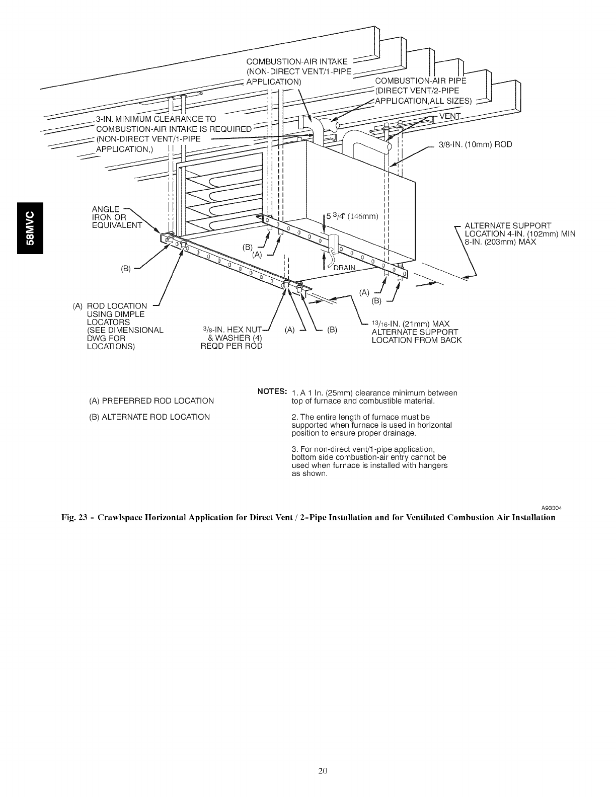 a. In the event that the side wall horizontally vented gas fueled equipment is installed in acrawl space or an attic, the hard wired