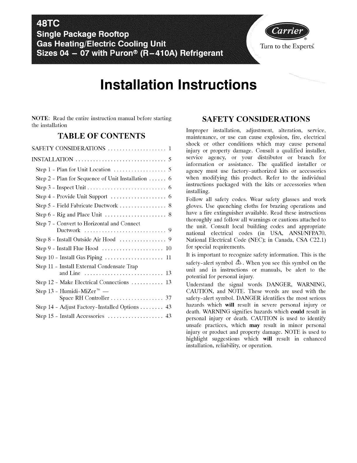 User Manual: CARRIER CARRIER Package Units(both units combined) Manual CARRIER Package Units(both units combined) Owner's Manual, CARRIER Package Units(both units combined) installation guides