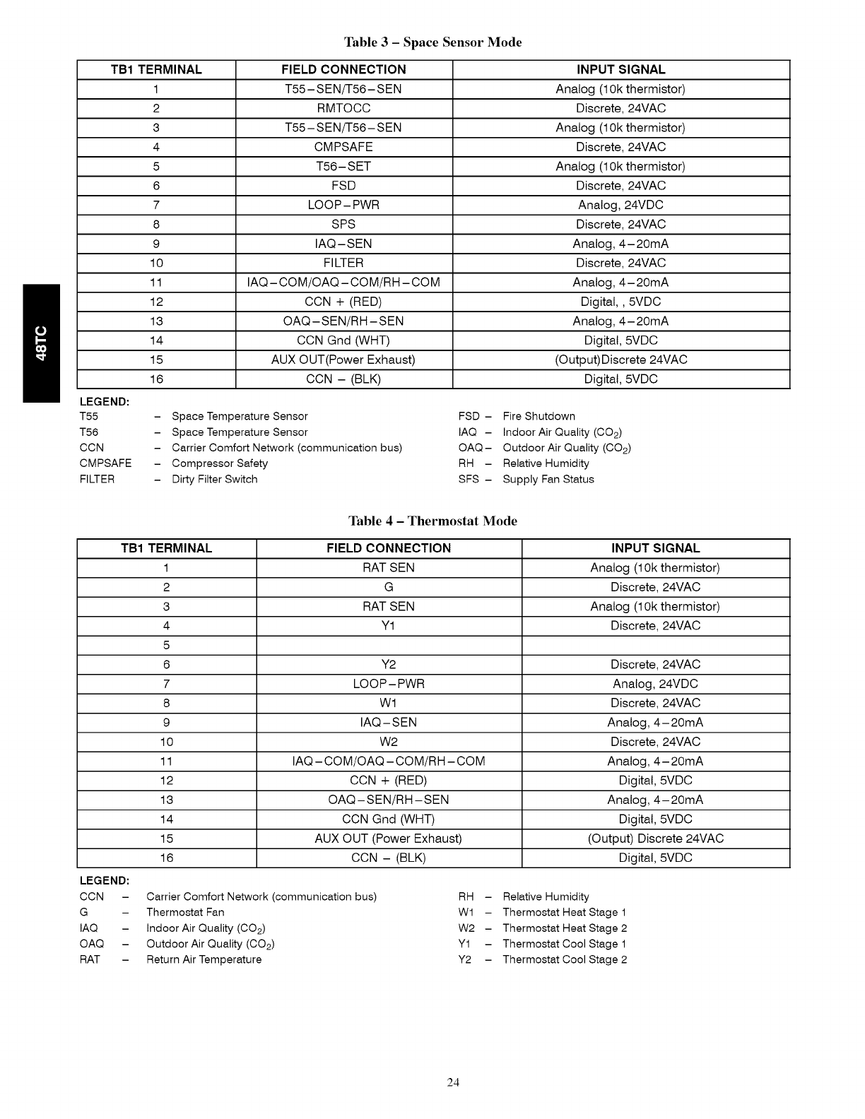2 IF A SEPERATE FIELD SUPPLIED 24V TRANSFORMER IS USED FOR THE TAN