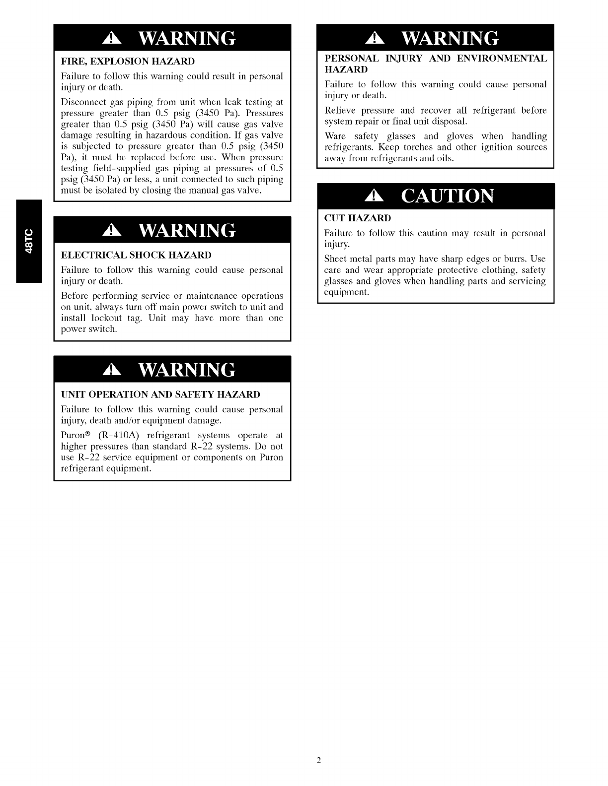 death. WARNING signifies hazards which could result in