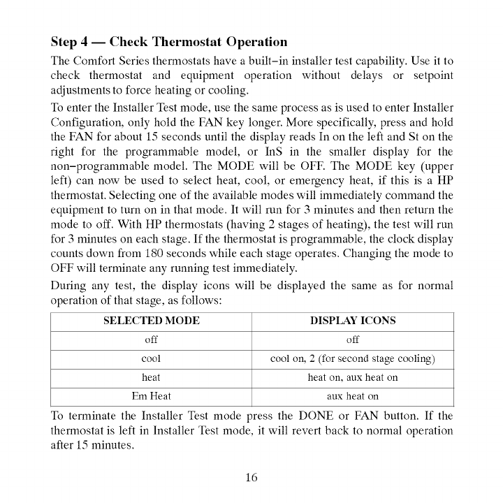 Step 4 -- Check Thermostat Operation ............................ 16