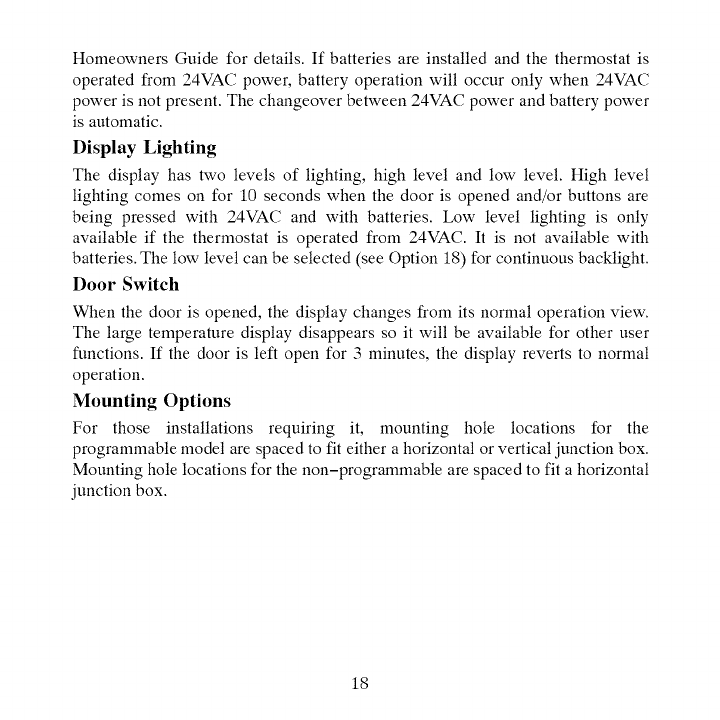 24VAC power. Operation from 24VAC is preferred if available. Battery