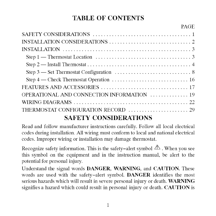 THERMOSTAT CONFIGURATION RECORD ...................... 29