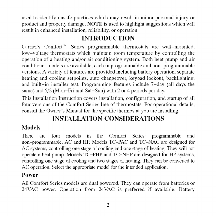 operate a heat pump. Models TC-PHP and TC-NHP are designed for HP systems,