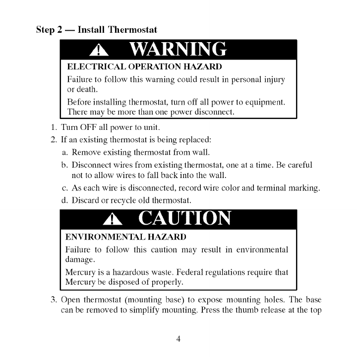 Step 2 -- Install Thermostat ...................................... 4