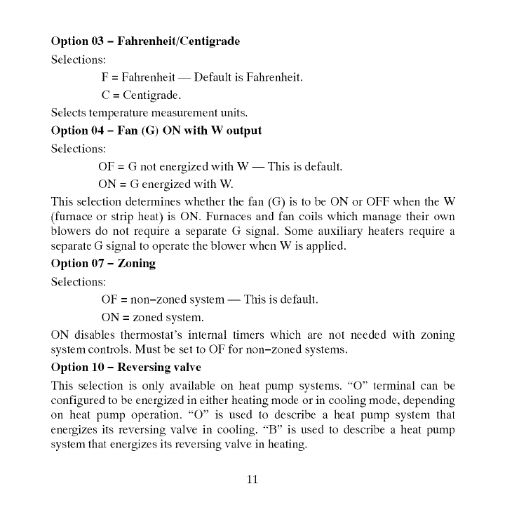 Option 03* ____ Fahrenheit/Centigrade Selection