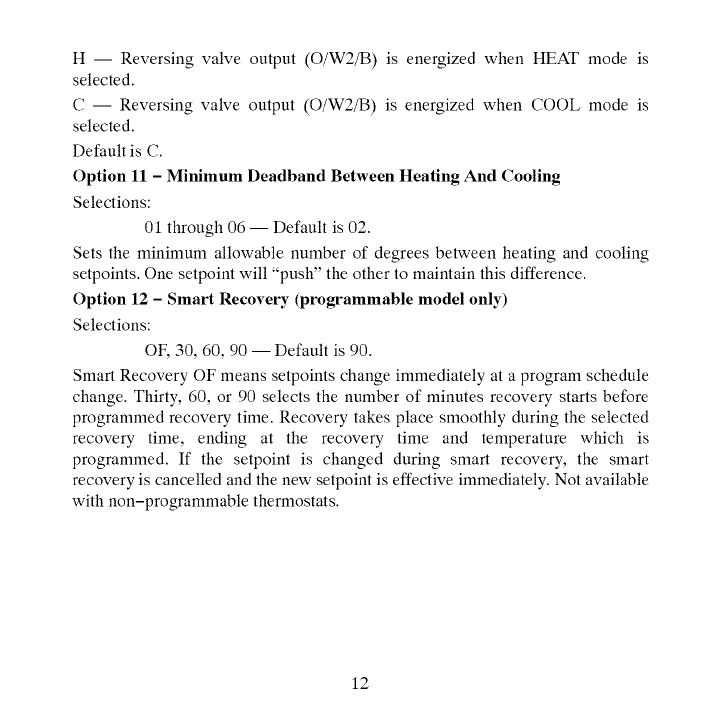Option 12 __ Smart Recovery (programmable models only)