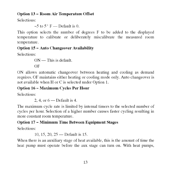 Option 13 __ Room Air Temperature Offset Adjustment