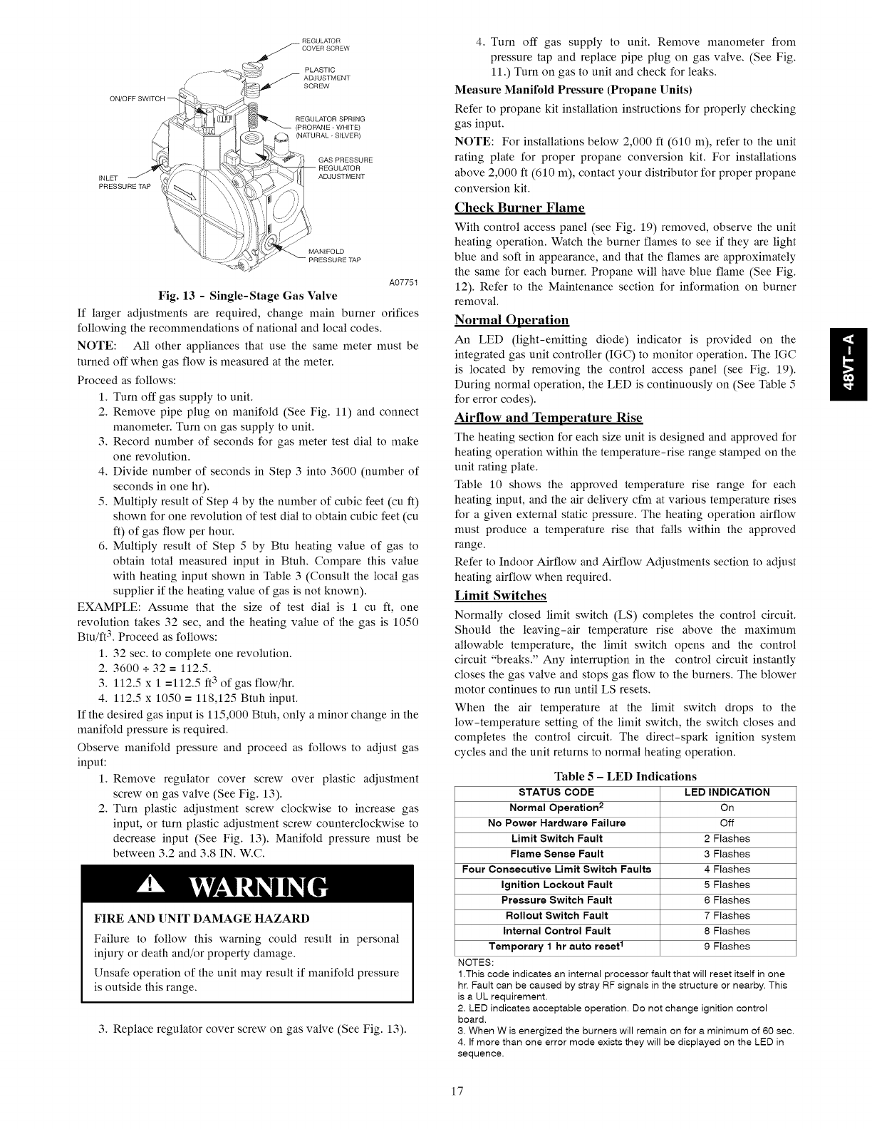 (LED 2 flashes) High temperature limit switch is open. that the supply-air temperature rise is in accordance with the
