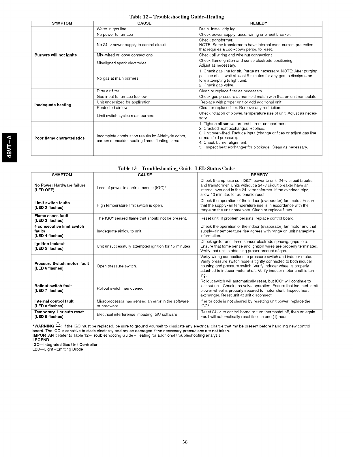 IMPORTANT: Refer to Table 12-Troubleshooting Guide-Heating for additional troubleshooting analysis.