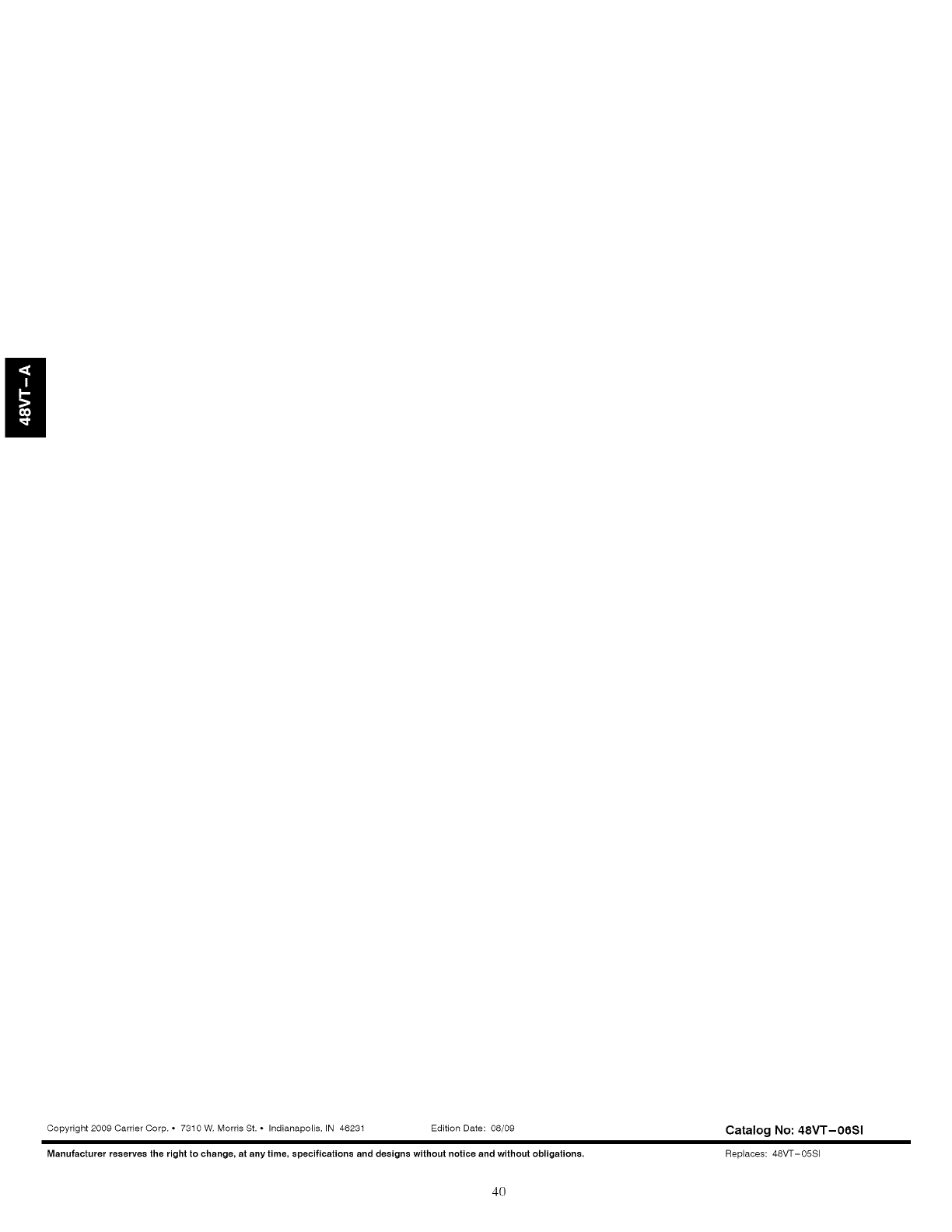 Copyright 2009 Carrier Corp. • 7310 W. Morris St. • Indianapolis, IN 46231 Edition Date: 08/09
