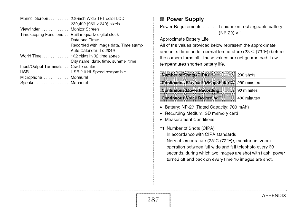 • Battery: NP-20 (Rated Capacity: 700 mAh)