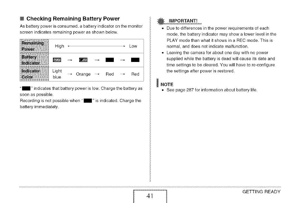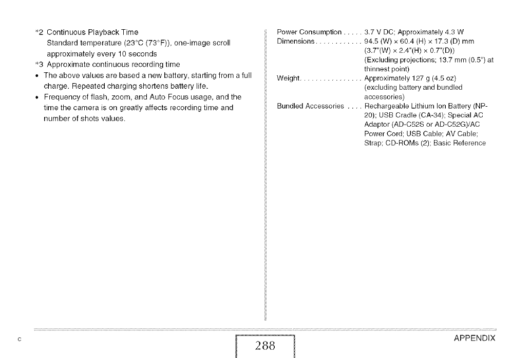 the camera turns off. These values are not guaranteed. Low