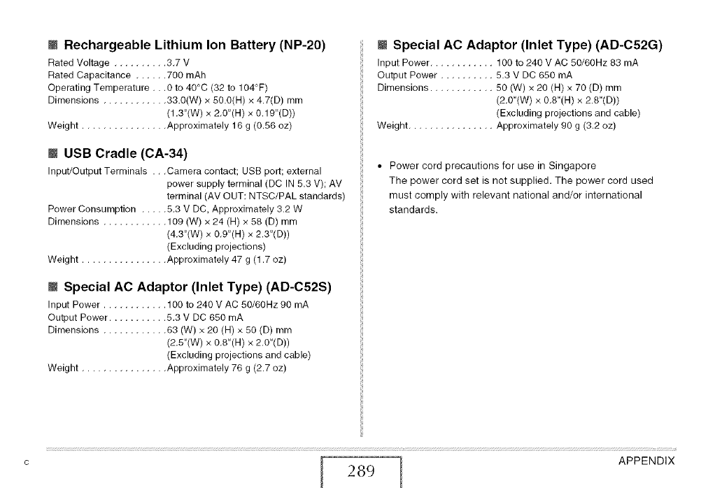 20); USB Cradle (CA-34); Special AC