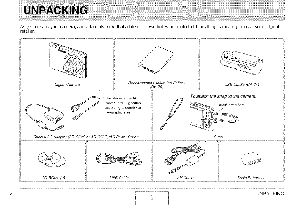 As you unpack your camera, check to make sure that all items shown below are included. If anything is missing, contact your original
