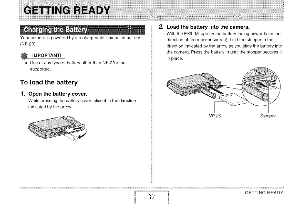 J To load the battery 37