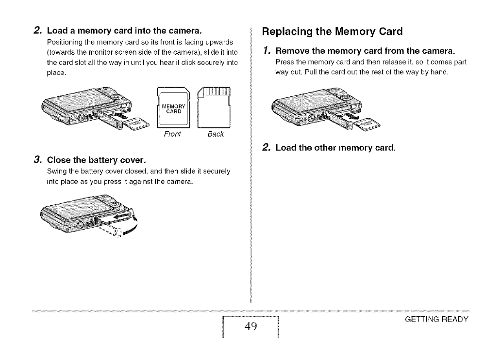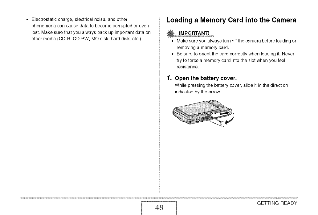 J Loading a Memory Card into the Camera 48