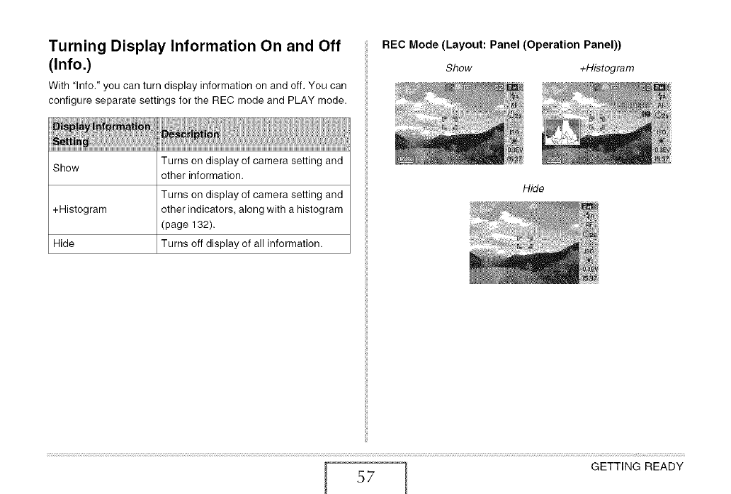 J Turning Display Information On and Off (Info,) 57