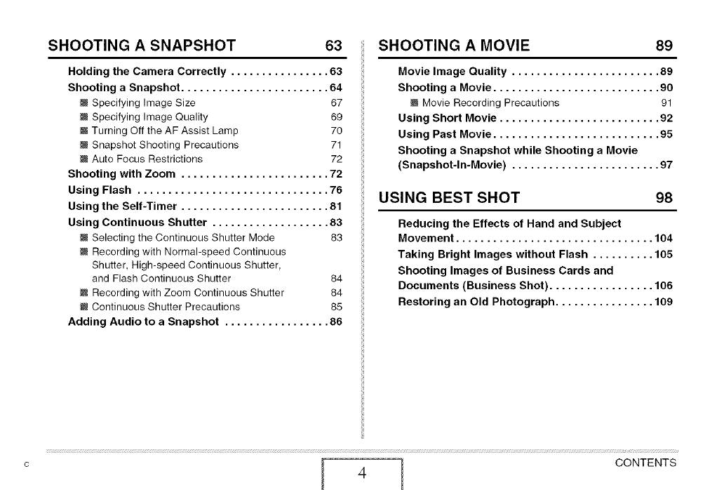 Using Continuous Shutter ................... 83