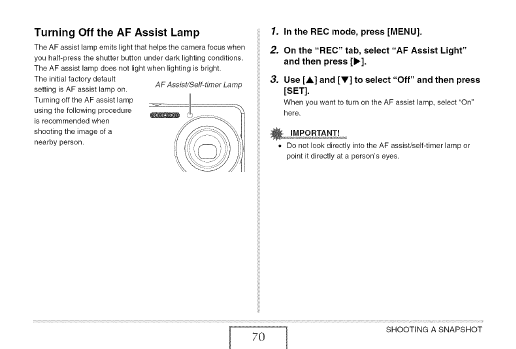 J Turning Off the AF Assist Lamp 70
