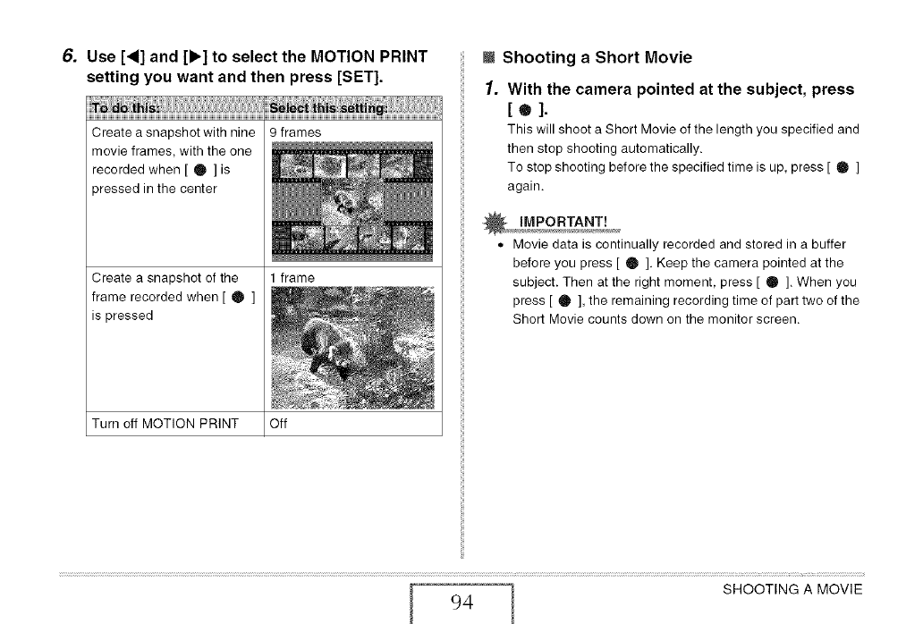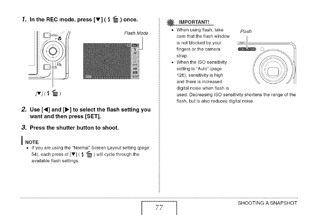 seconds, during which two images are shot with flash; power
