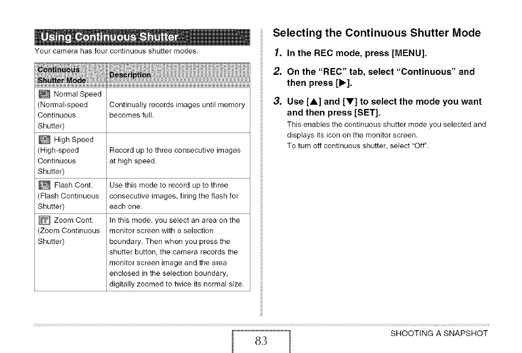 J Selecting the Continuous Shutter Mode 83