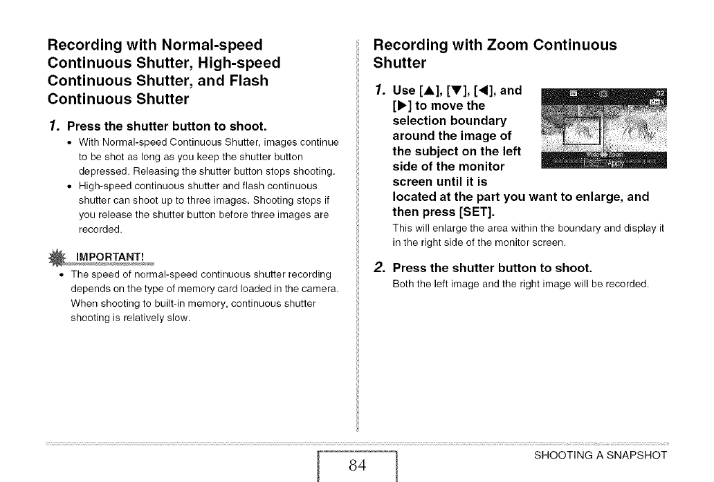 W Recording with Zoom Continuous Shutter 84