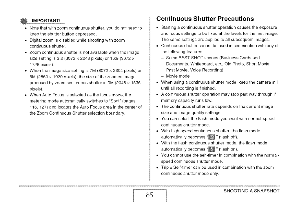 m Continuous Shutter Precautions 85