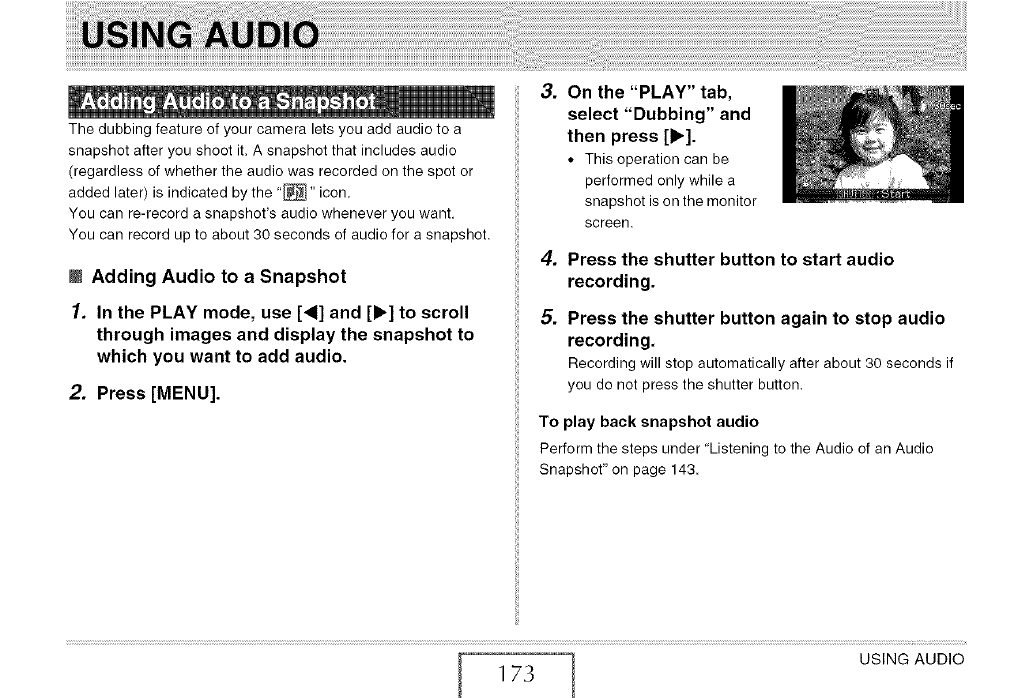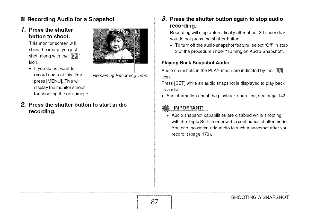 Adding Audio to a Snapshot ................. 86