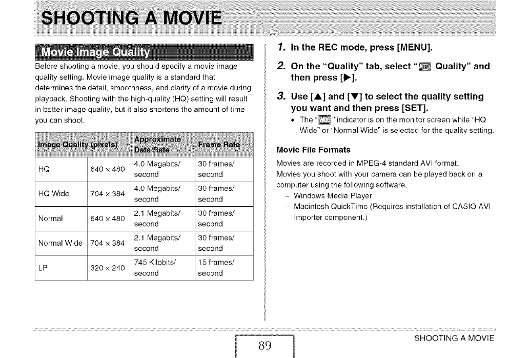 Movie Image Quality ........................ 89