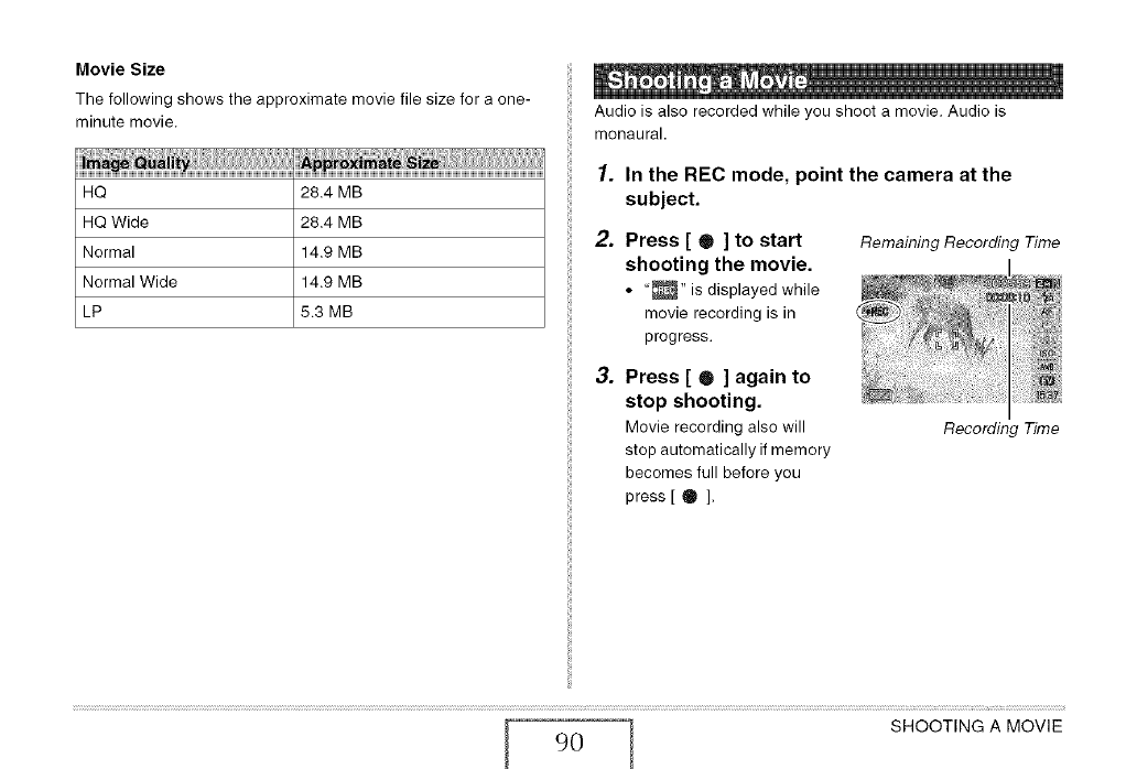 W Movie Recording Precautions 91
