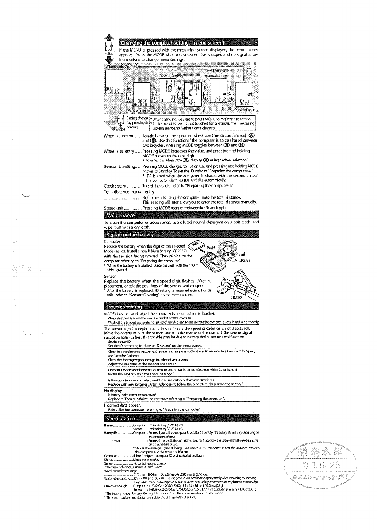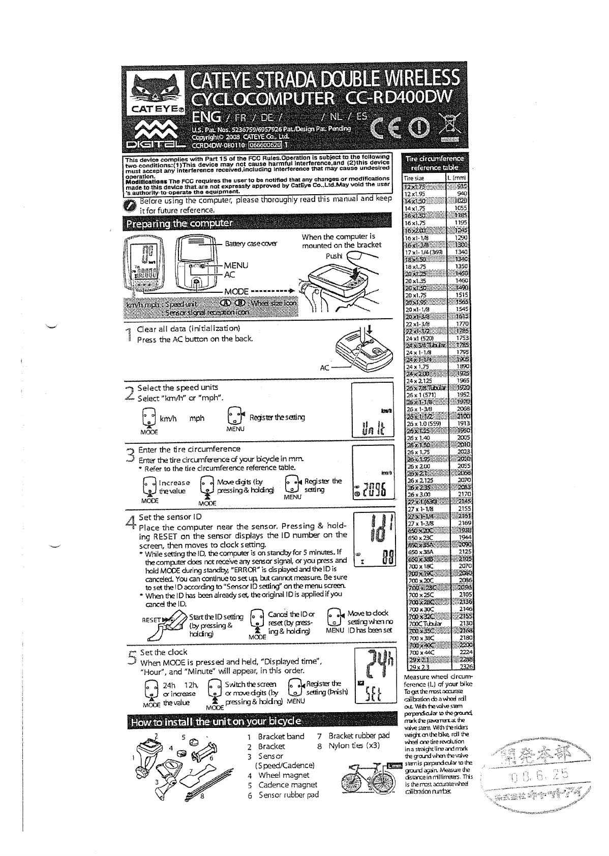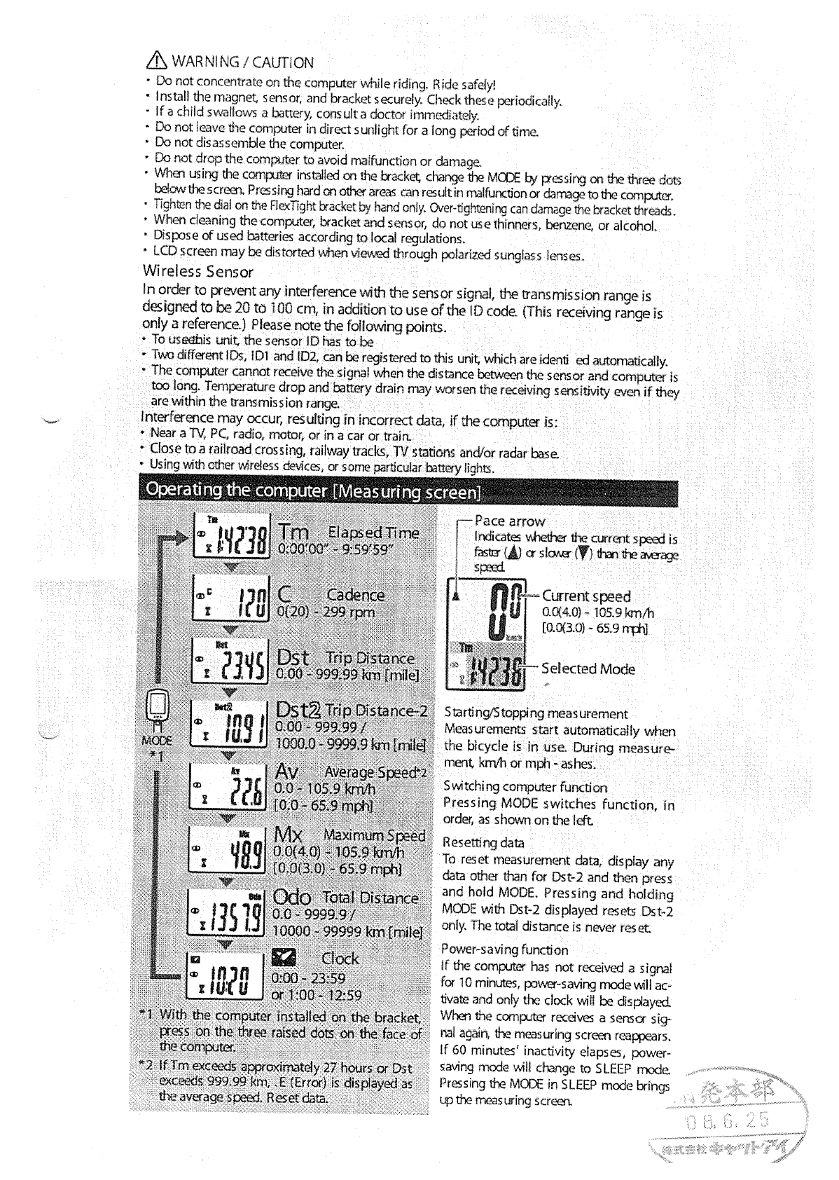 CATEYE Co., Ltd. Cycle Computer Users Manual