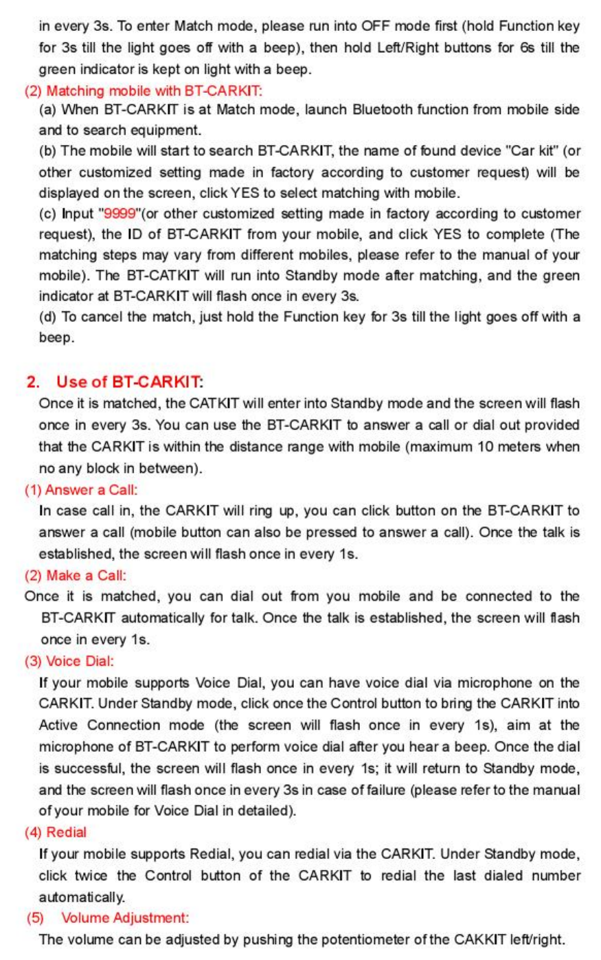CCA Electronic Factory BLUETOOTH FM CAR KIT Users Manual