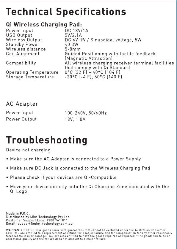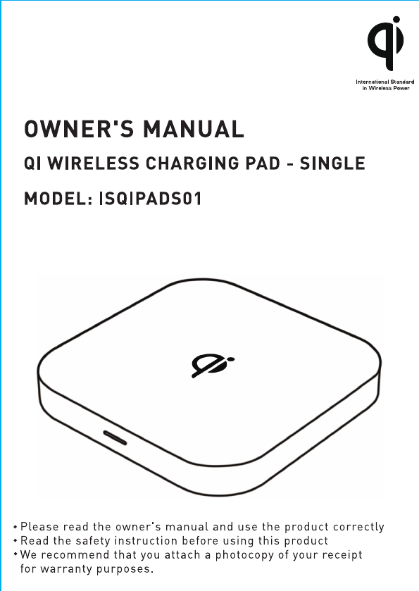 CCA Electronic Factory QI-1206A WIRELESS CHARGER User Manual ISQIPADS01 SINGLE R1 12MAR2013 OL