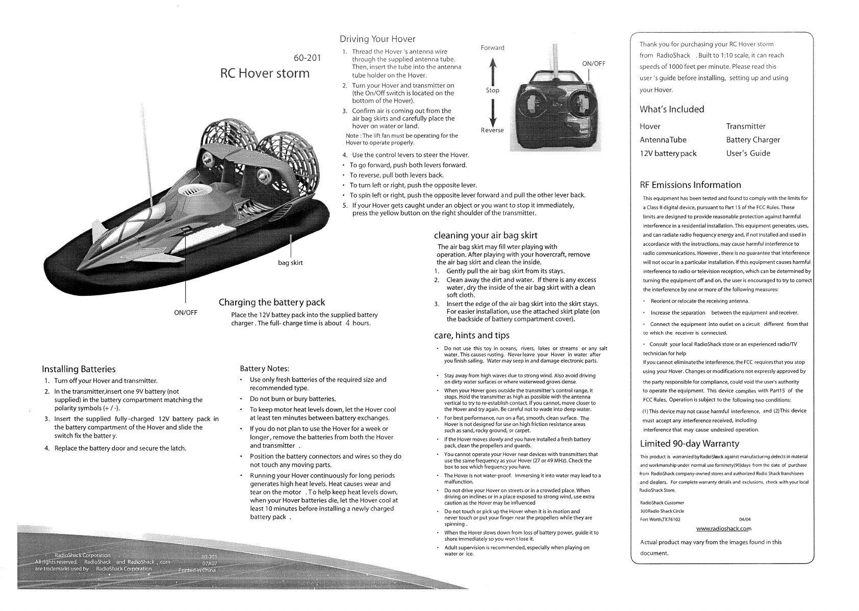 CCP 5112-TX27 RC Hovercraft User Manual