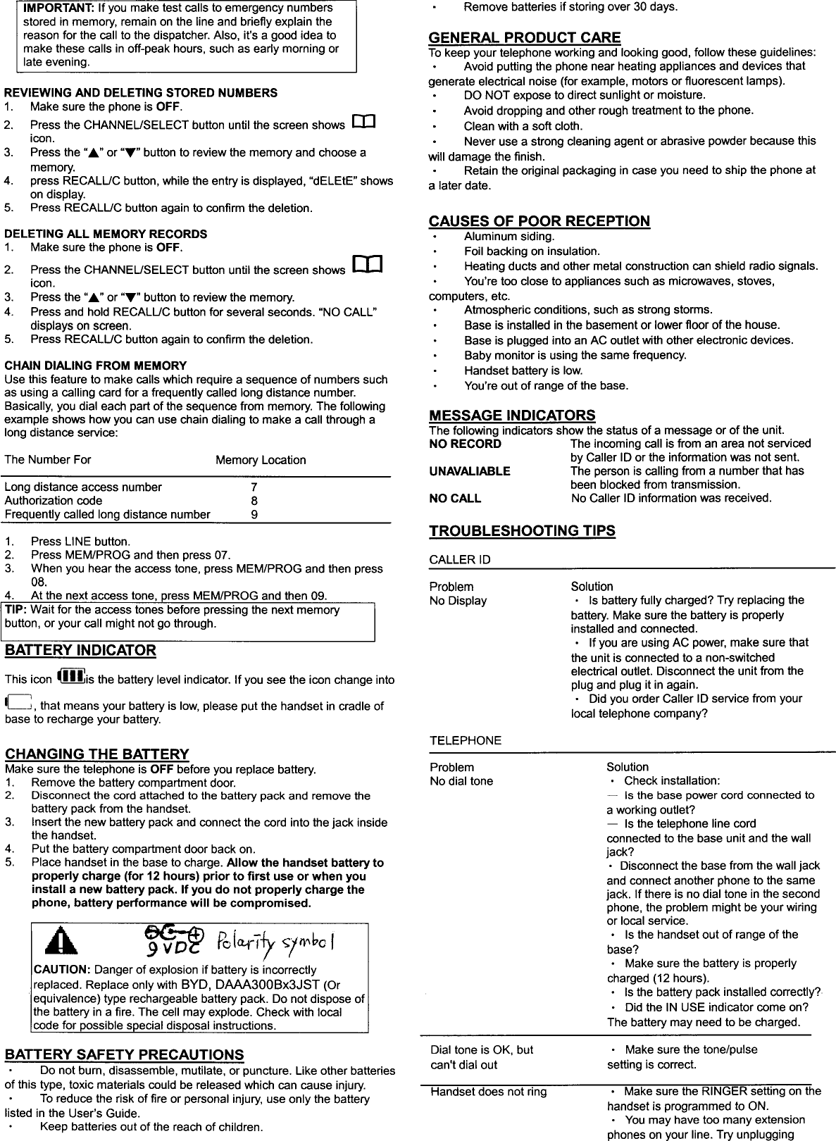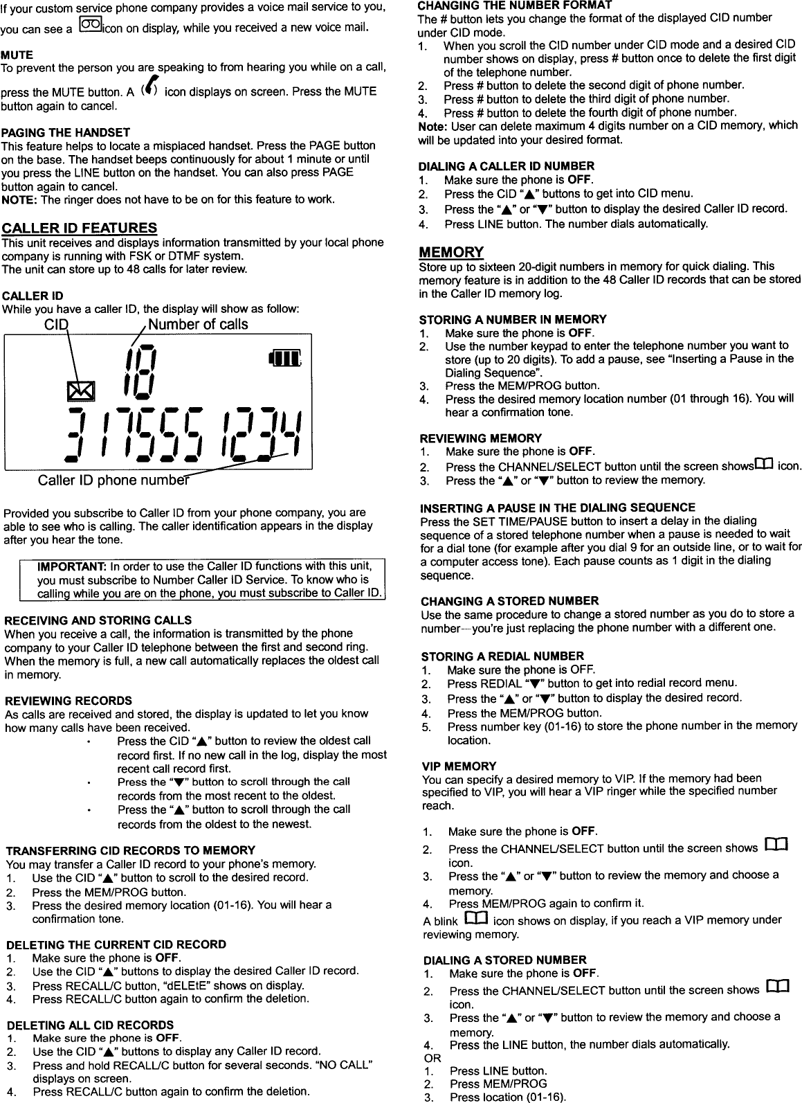 CCT Tech Advanced Products Limited 10 Channel Cordless Phone with Caller ID Users Manual