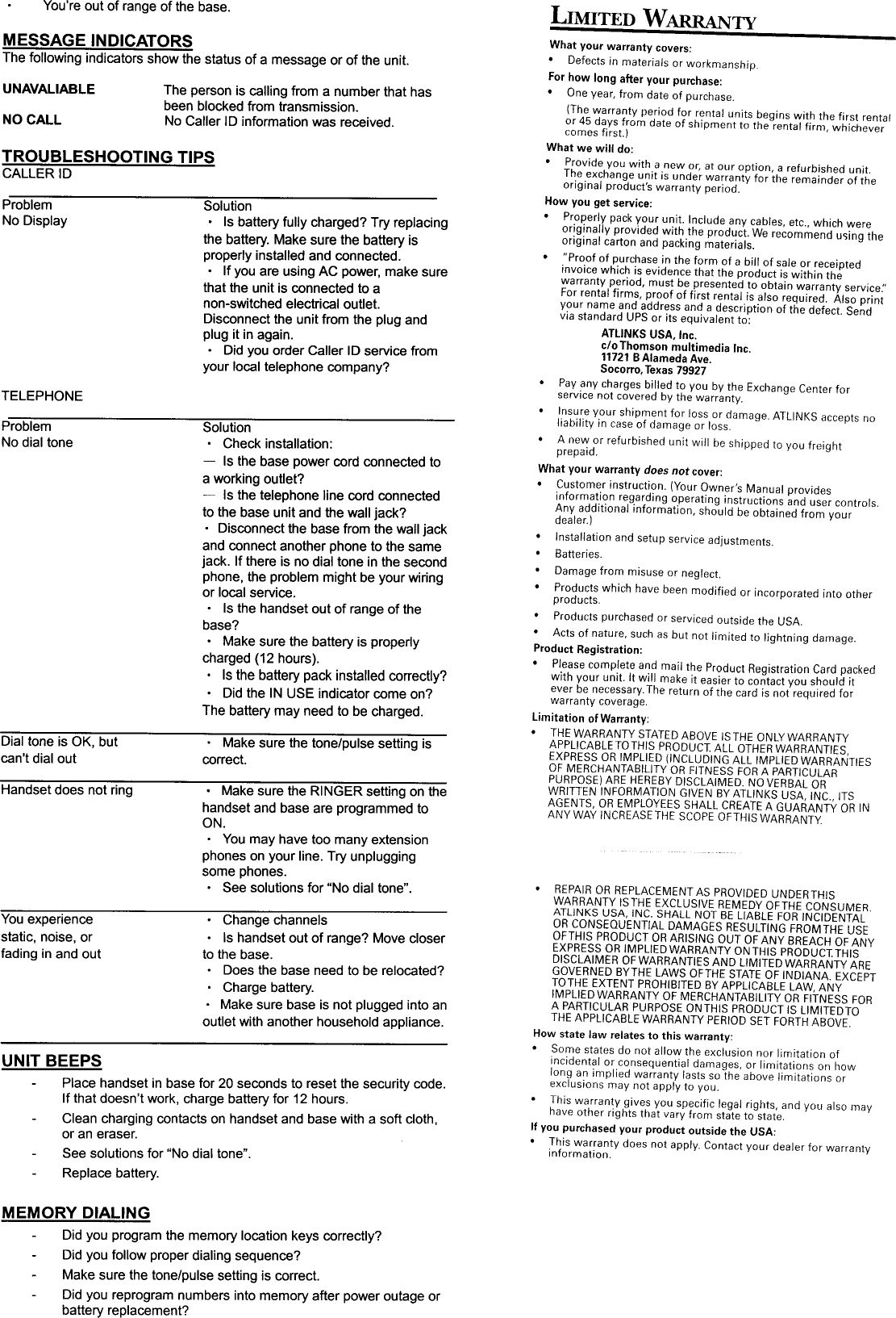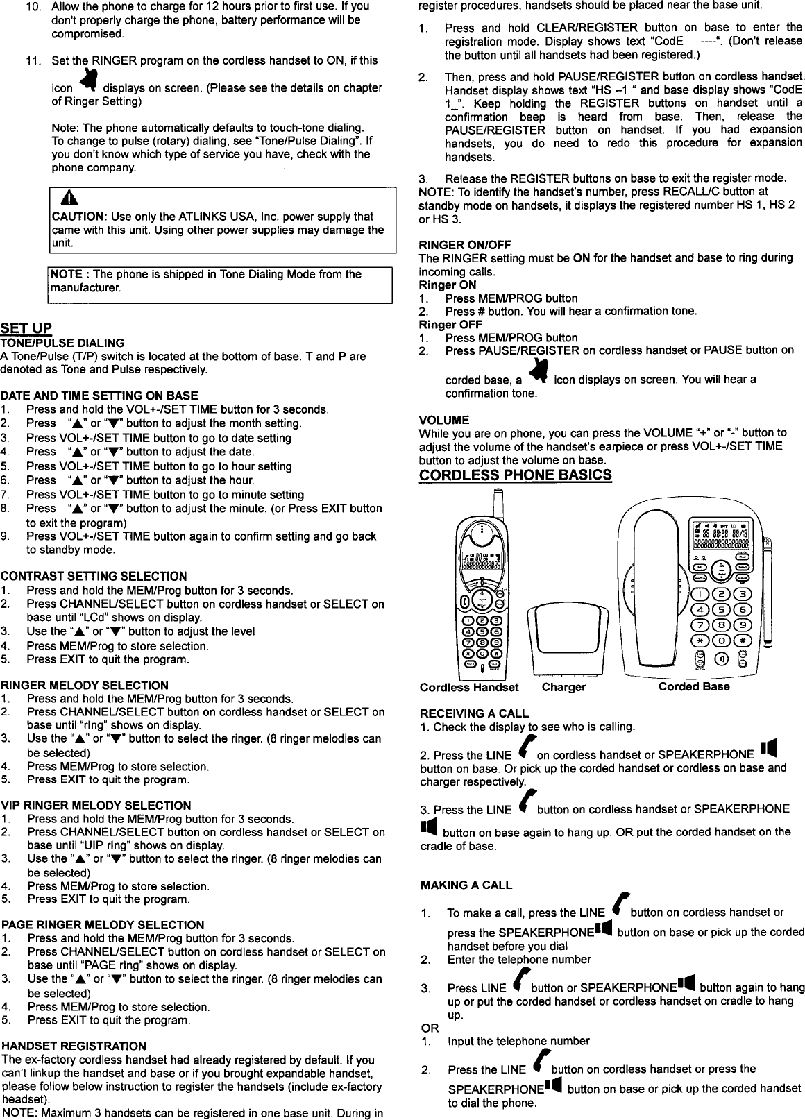 CCT Tech Advanced Products Limited 10 Channel Cordless Phone with Caller ID Users Manual