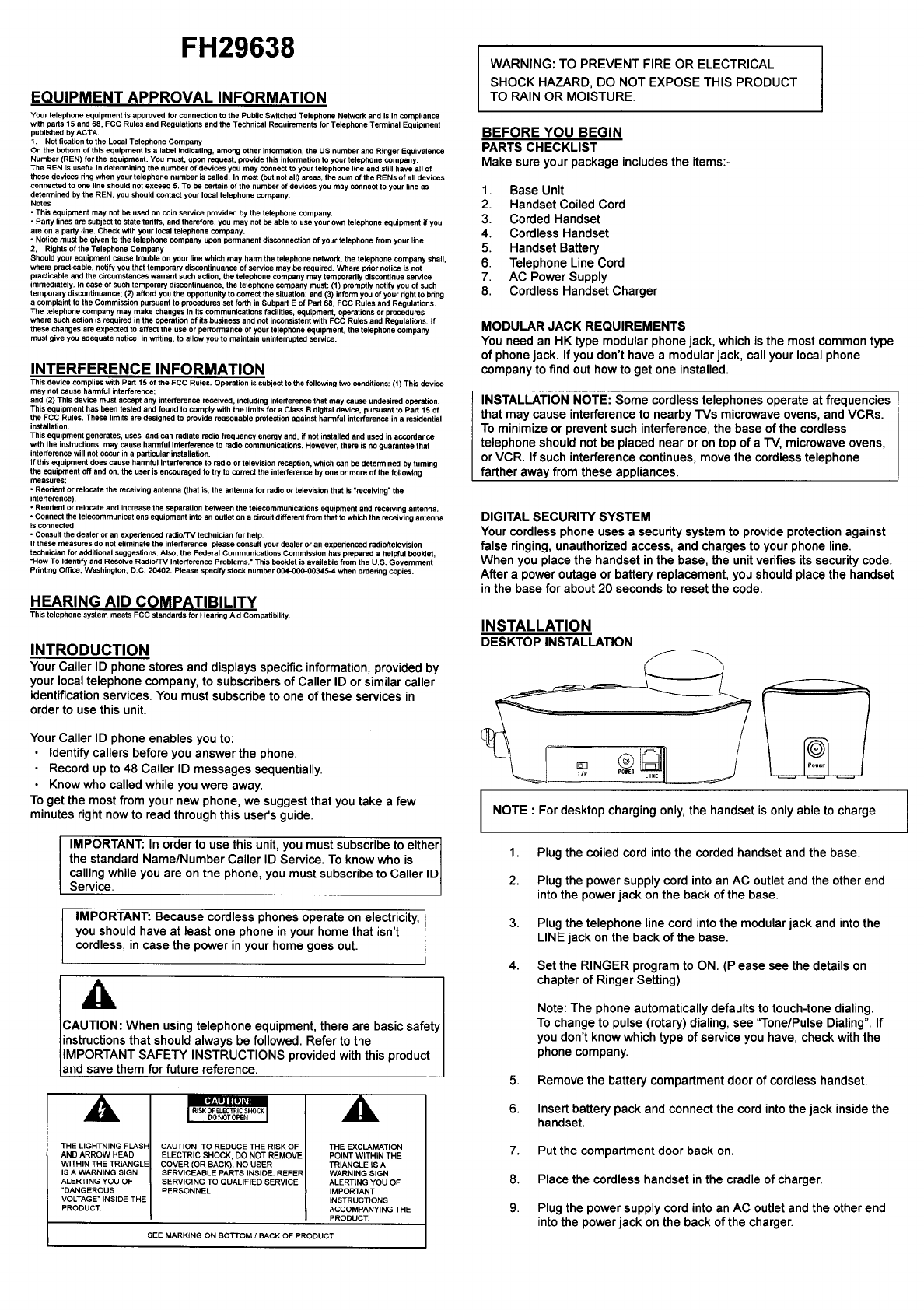 CCT Tech Advanced 2-9638 10 Channel Cordless Phone with Caller ID User Manual