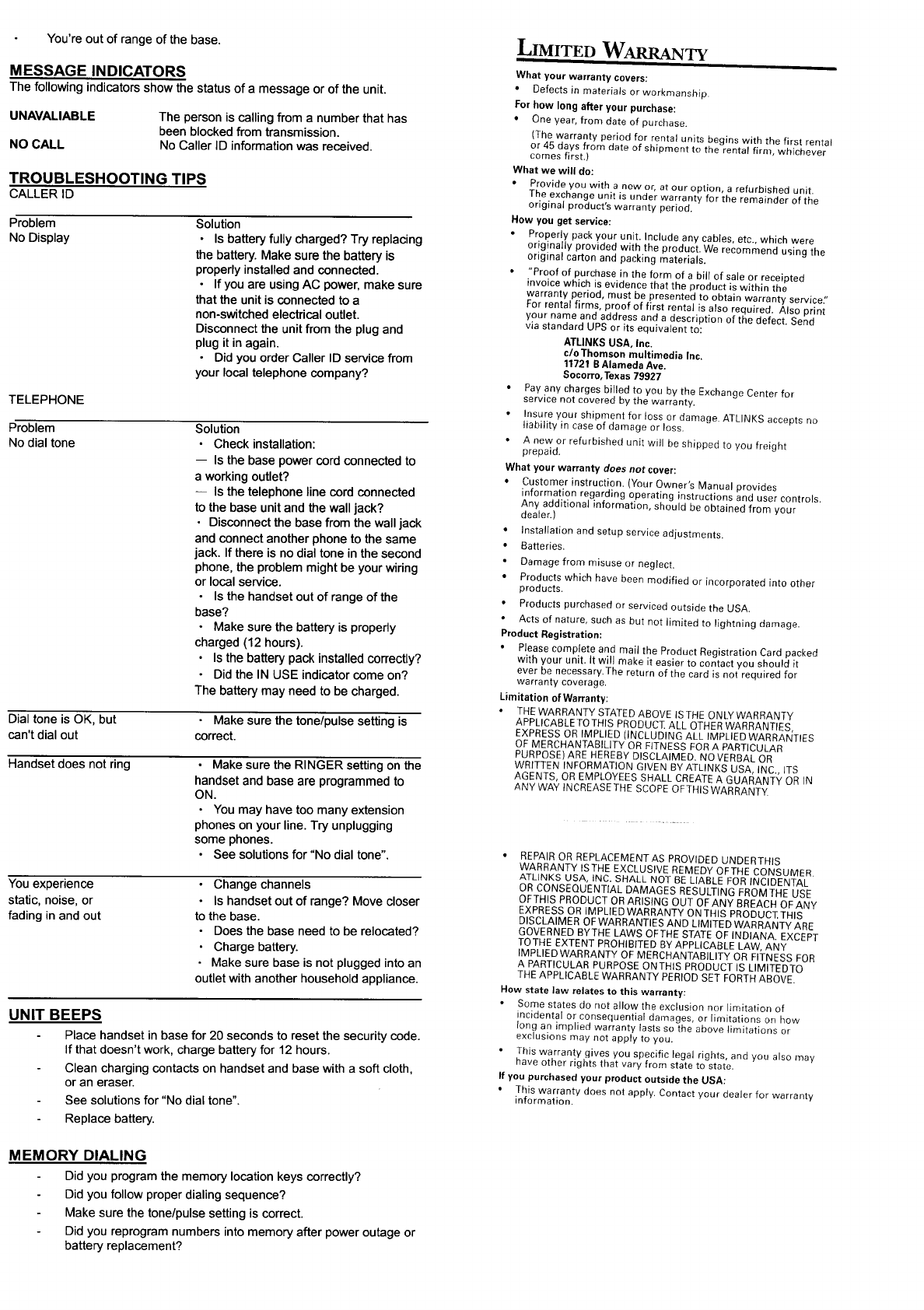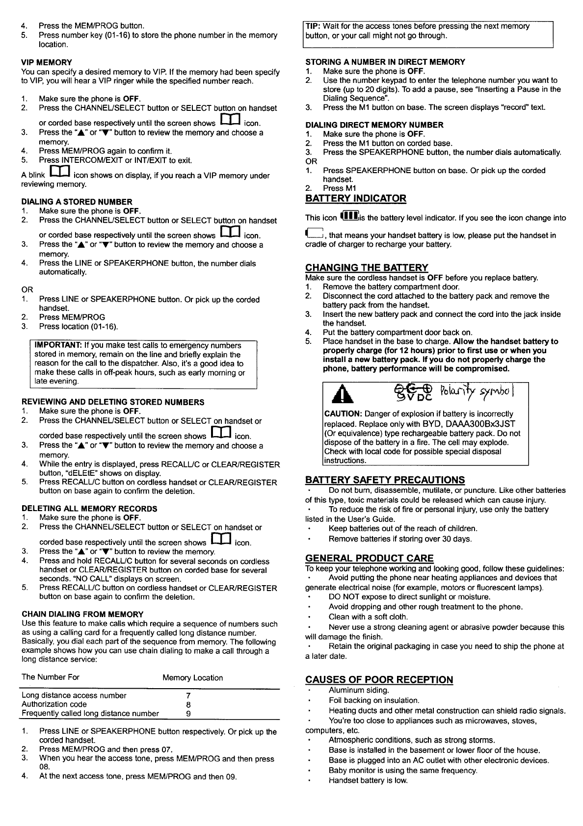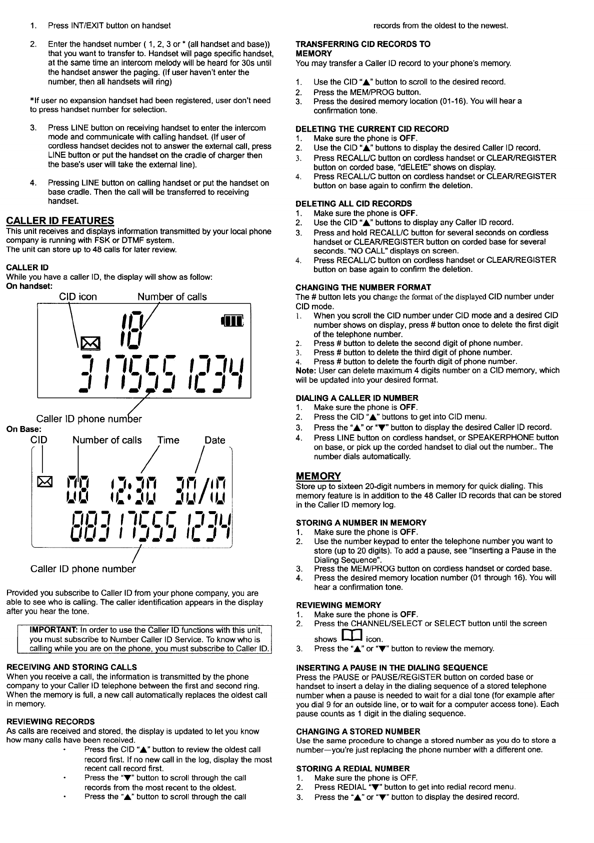 CCT Tech Advanced Products Limited 10 Channel Cordless Phone with Caller ID Users Manual